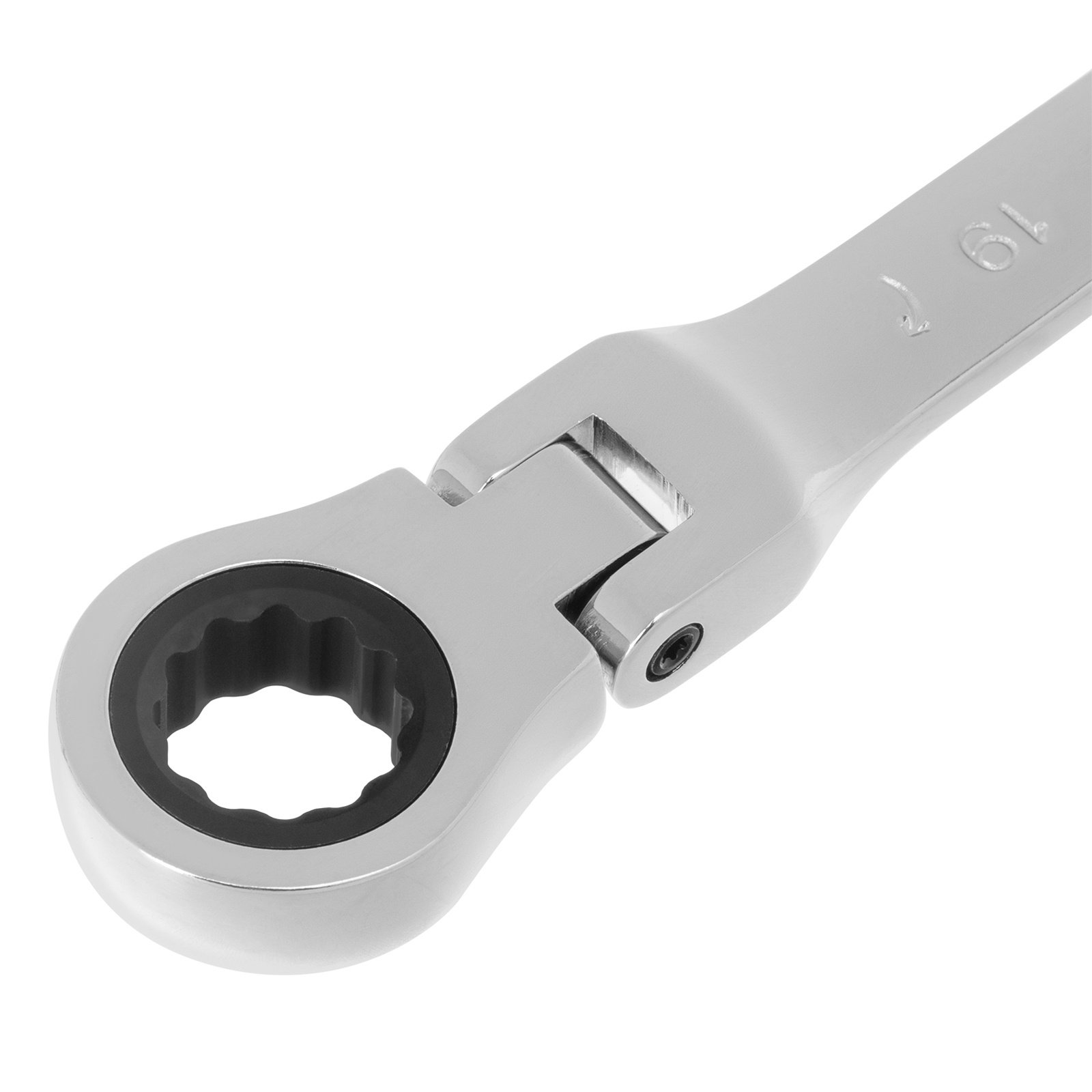 - Удобная работа в труднодоступных местах — храповой механизм на 72 зуба обеспечивает плавное вращение (шаг трещотки составляет 5°), а шарнир позволяет поворачивать рабочую часть под углом.