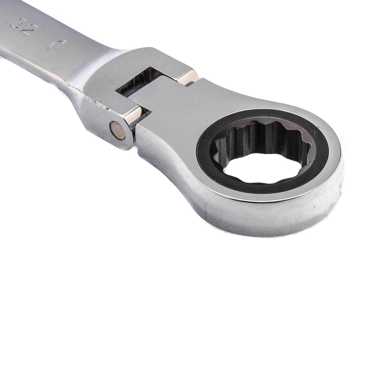 - Удобная работа в труднодоступных местах — храповой механизм на 72 зуба обеспечивает плавное вращение (шаг трещотки составляет 5°), а шарнир позволяет поворачивать рабочую часть под углом.