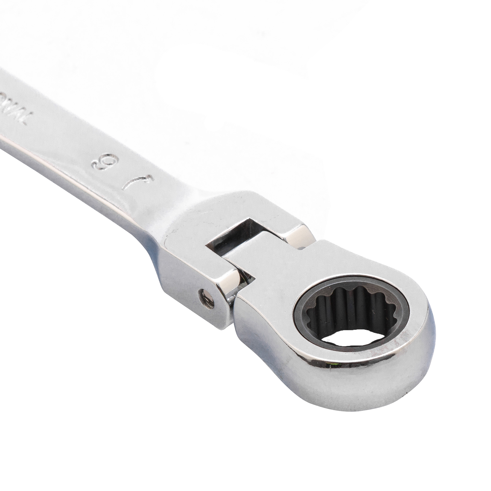- Удобная работа в труднодоступных местах — храповой механизм на 72 зуба обеспечивает плавное вращение (шаг трещотки составляет 5°), а шарнир позволяет поворачивать рабочую часть под углом.