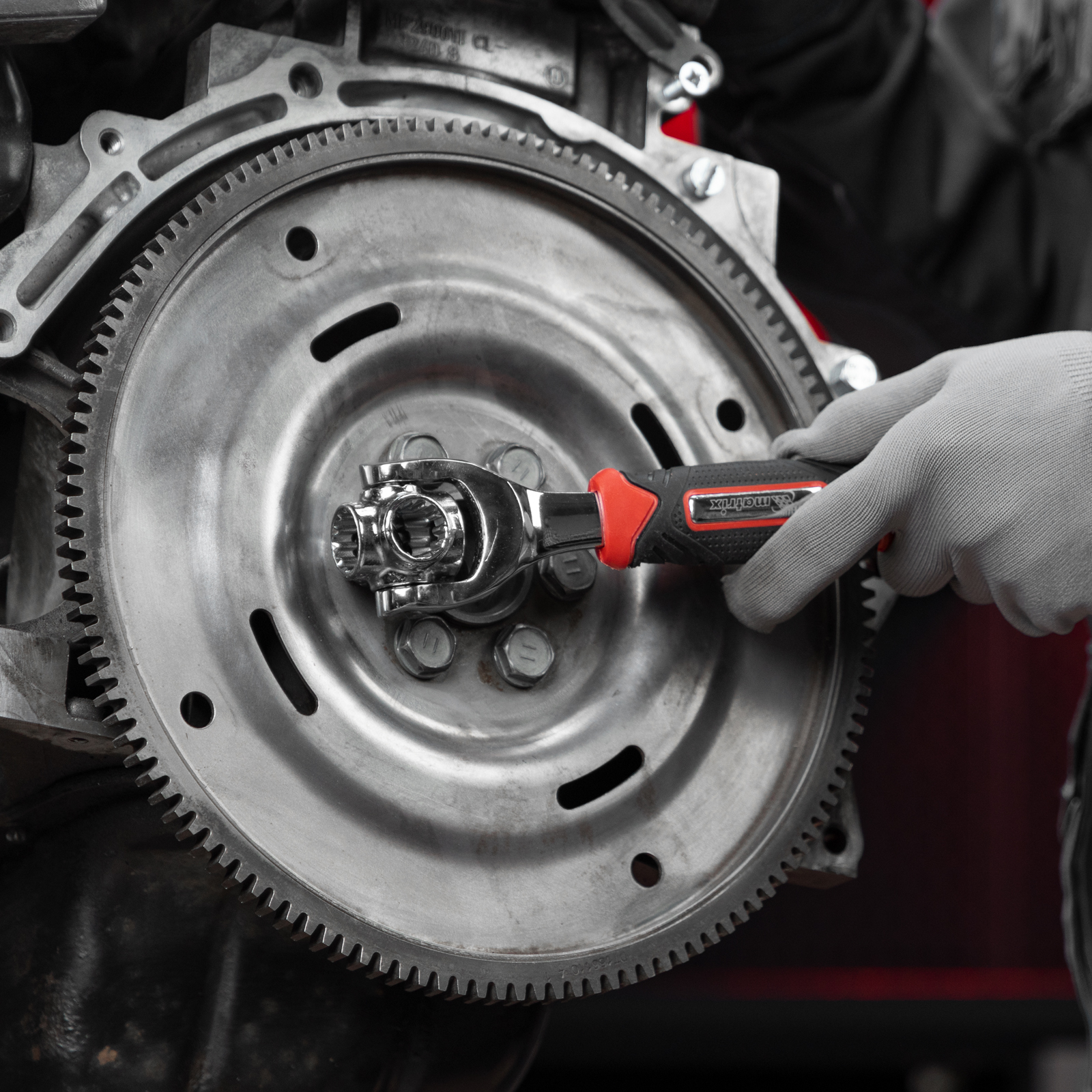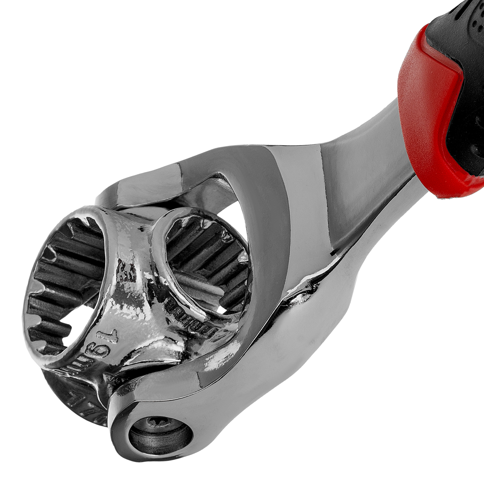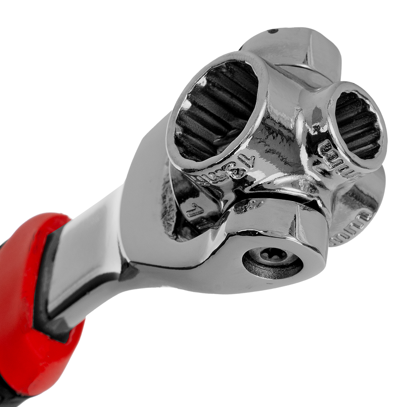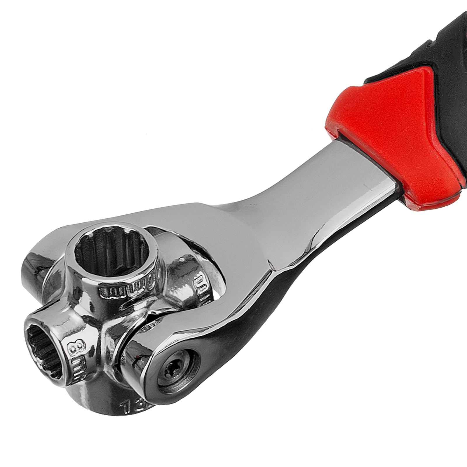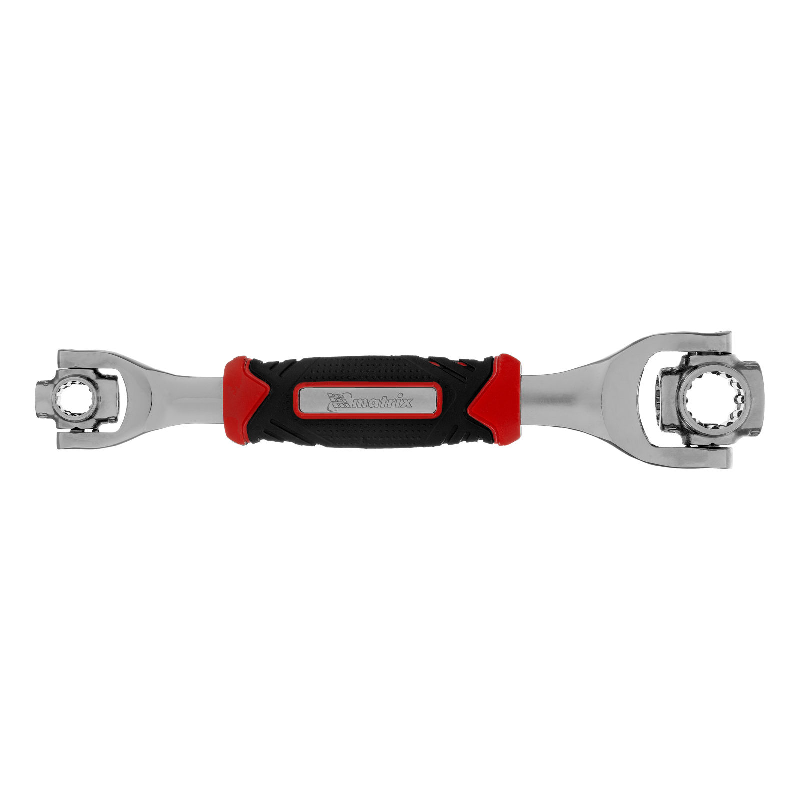 Ключ универсальный 48 в 1 Matrix 14999 из стали CrV имеет 8 размеров головок: 8 мм, 10 мм, 11 мм, 13 мм, 14 мм, 16 мм, 17 мм, 19 мм. Подходит для различных профилей: 6-гранных, 8-гранных, 12-гранных, Square, Torx, Spline. Предназначен для монтажа и демонтажа болтовых соединений. Поворот головки на 360° и угол наклона 45° позволяют работать в труднодоступных местах. Конструкция головки позволяет закручивать и откручивать крепежи на высоких шпильках.