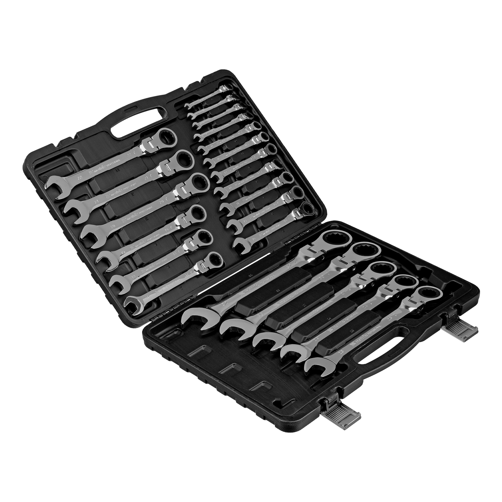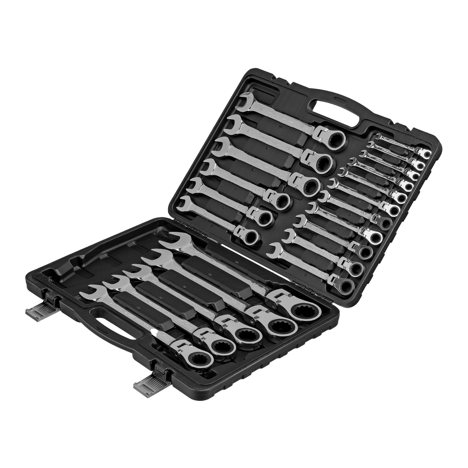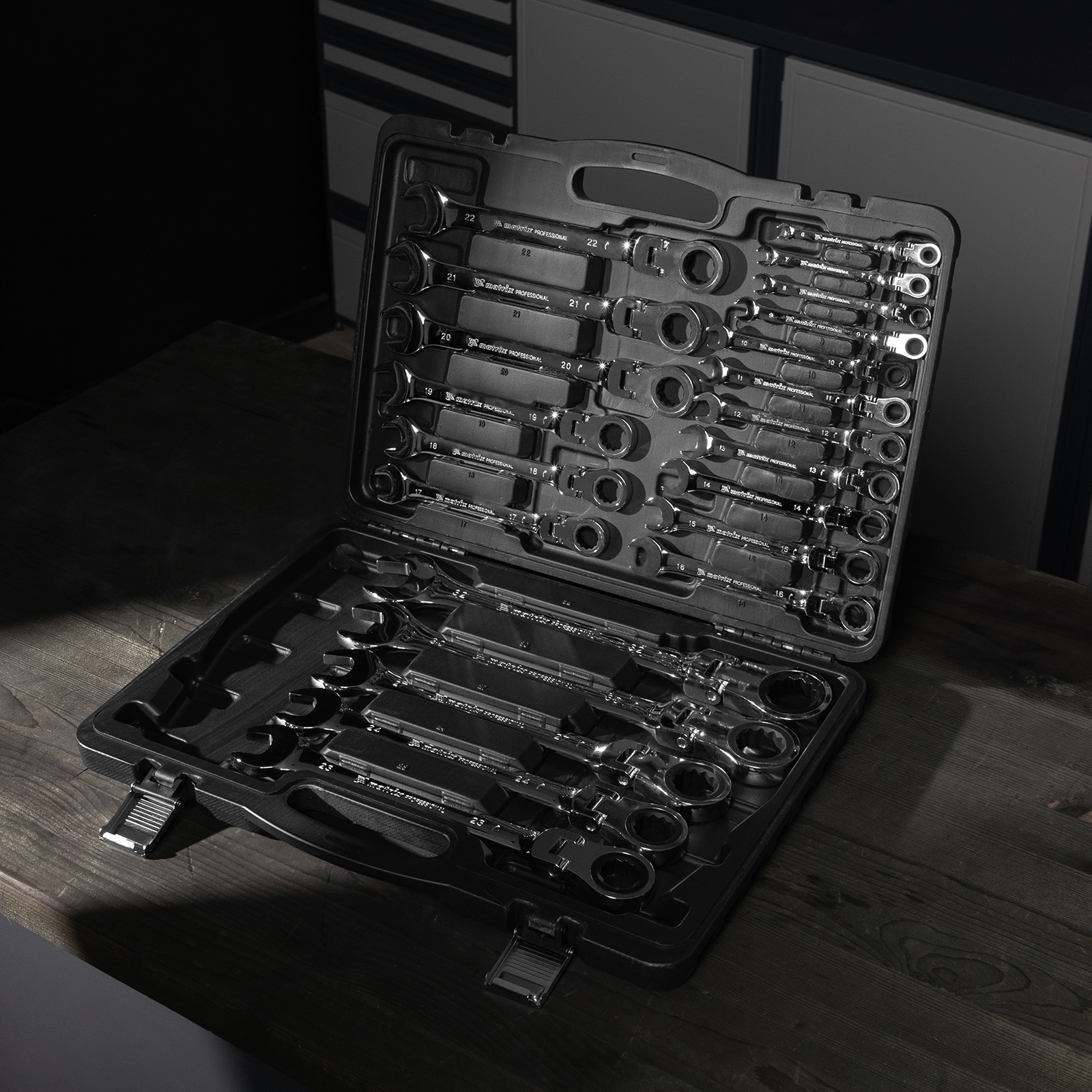 Набор из 22 комбинированных трещоточных шарнирных ключей Matrix 14800 пригодится мастерам и автолюбителям для фиксации и раскручивания крепежных элементов. Трещоточный механизм повышает скорость работы и легко справляется даже с закисшим крепежом.