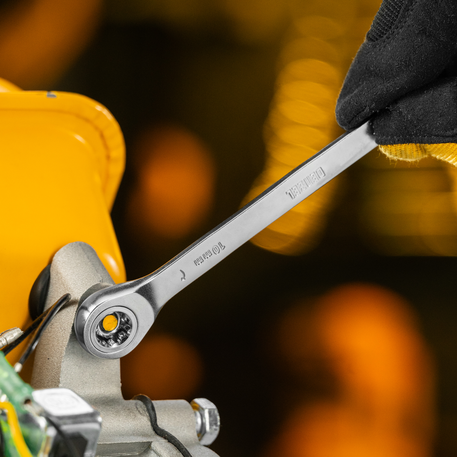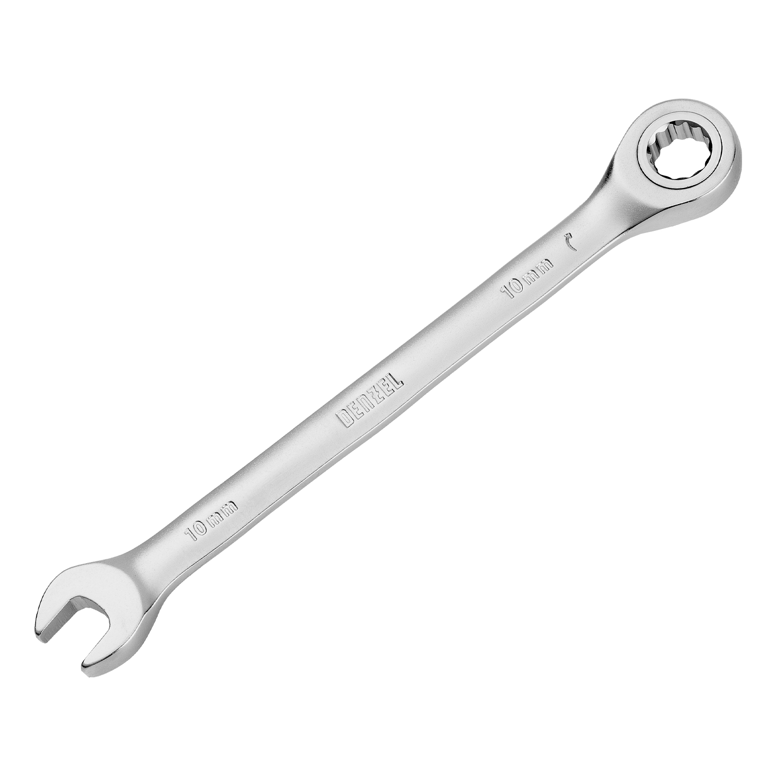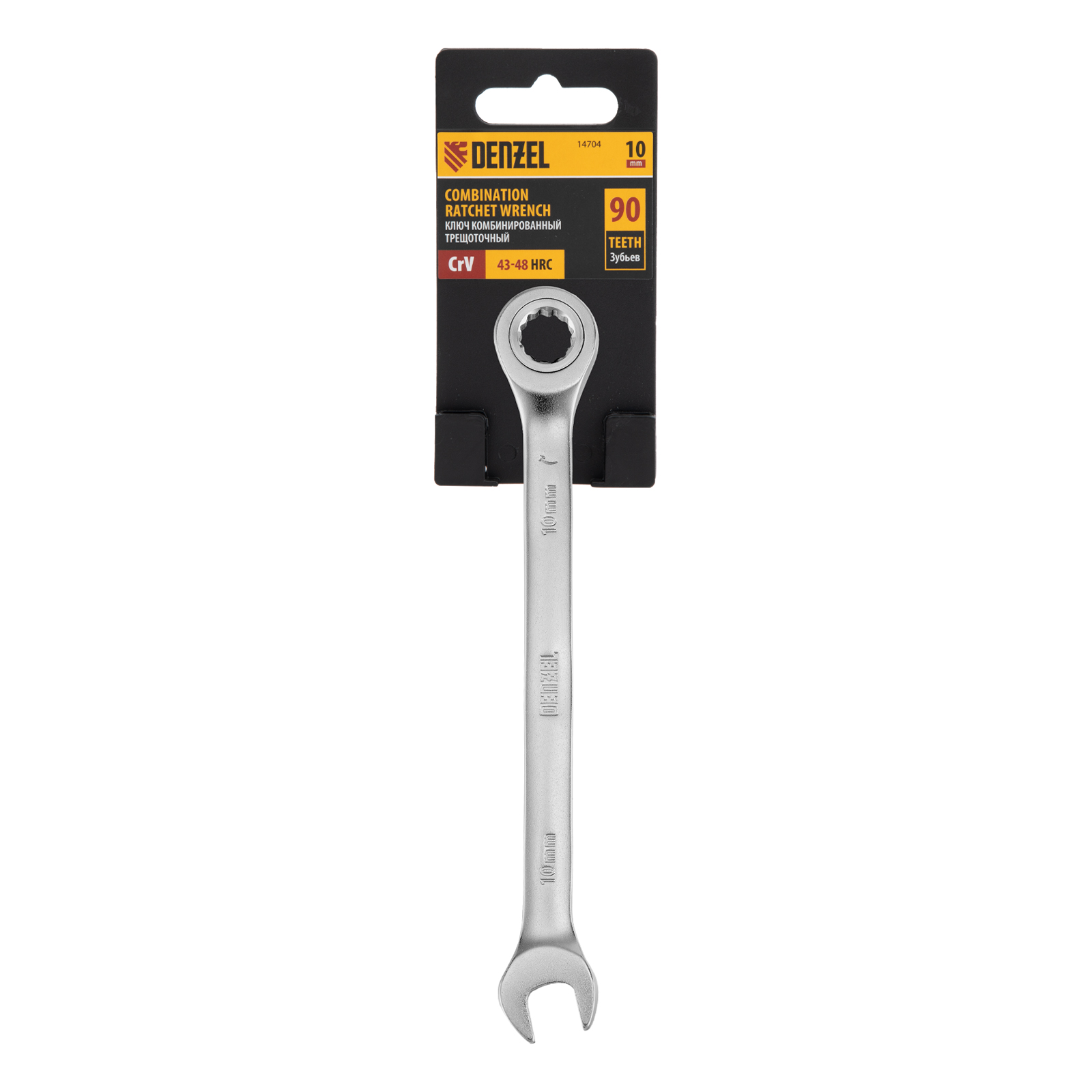 Комбинированный трещоточный ключ Denzel 14704 из стали CrV, с защитным покрытием «матовый хром», предназначен для работы с резьбовым крепежом размером 10 мм. Рожковый профиль упрощает работу в местах, где использование накидной рабочей части невозможно. Хромированное кольцо обеспечивает сохранность и долговечность инструмента. Ключ будет полезен дома, в мастерской и гараже.