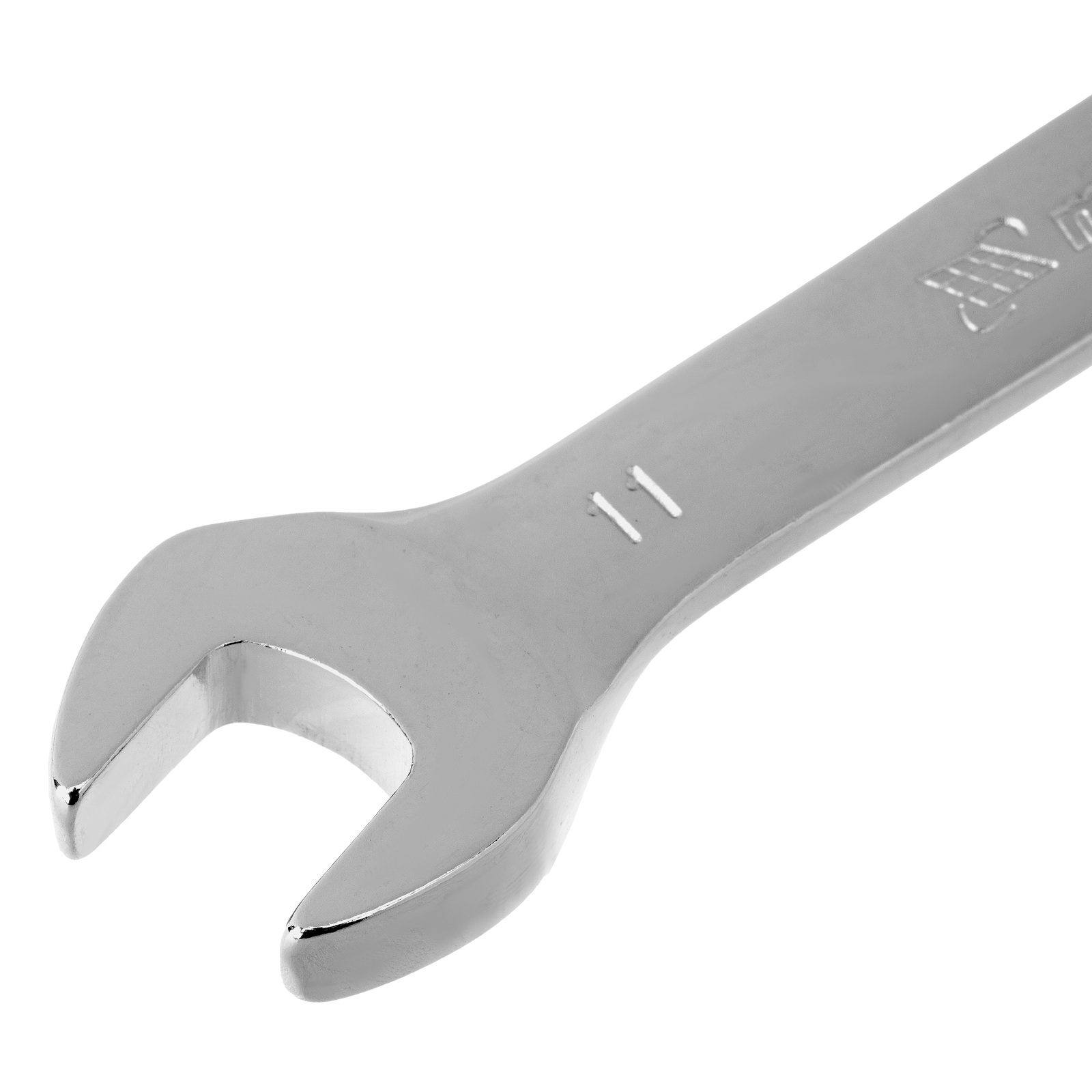 Комбинированный трещоточный ключ Matrix 14804 из стали CrV, с покрытием «зеркальный хром», размером 11 мм, позволяет быстро откручивать и закручивать болты и гайки. Рожковую часть удобно использовать там, где нет возможности полного охвата детали, а трещоточный механизм повышает удобство работы в труднодоступных местах.