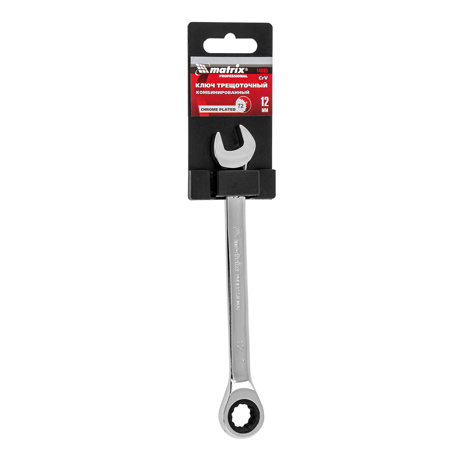 Комбинированный трещоточный ключ Matrix 14805 из стали CrV, с покрытием «зеркальный хром», размером 12 мм, позволяет быстро откручивать и закручивать болты и гайки. Рожковую часть удобно использовать там, где нет возможности полного охвата детали, а трещоточный механизм повышает удобство работы в труднодоступных местах.