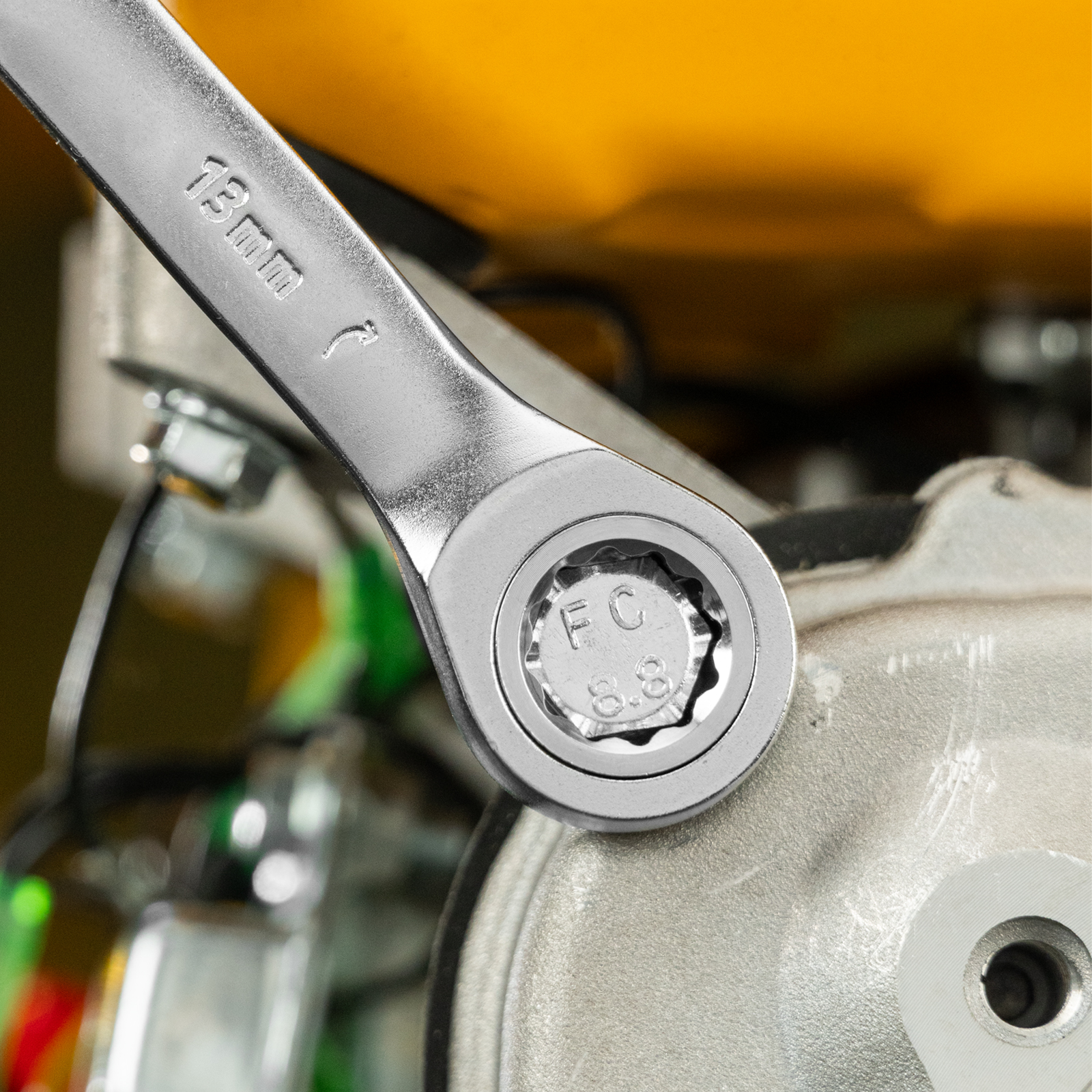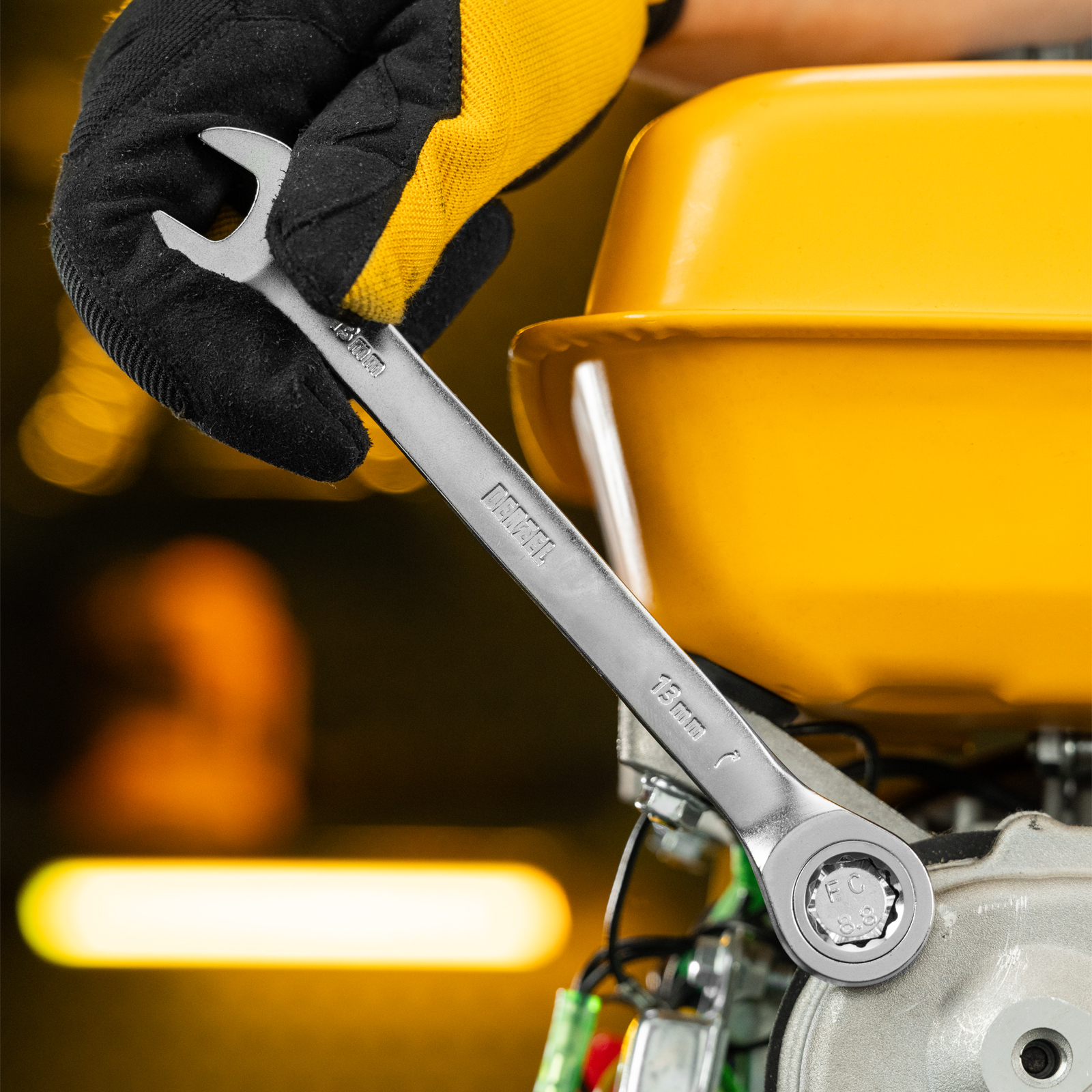 - Плавное вращение — благодаря храповому механизму с 90 зубьями шаг трещотки составляет всего 4°, инструмент удобен для работы в труднодоступных местах.