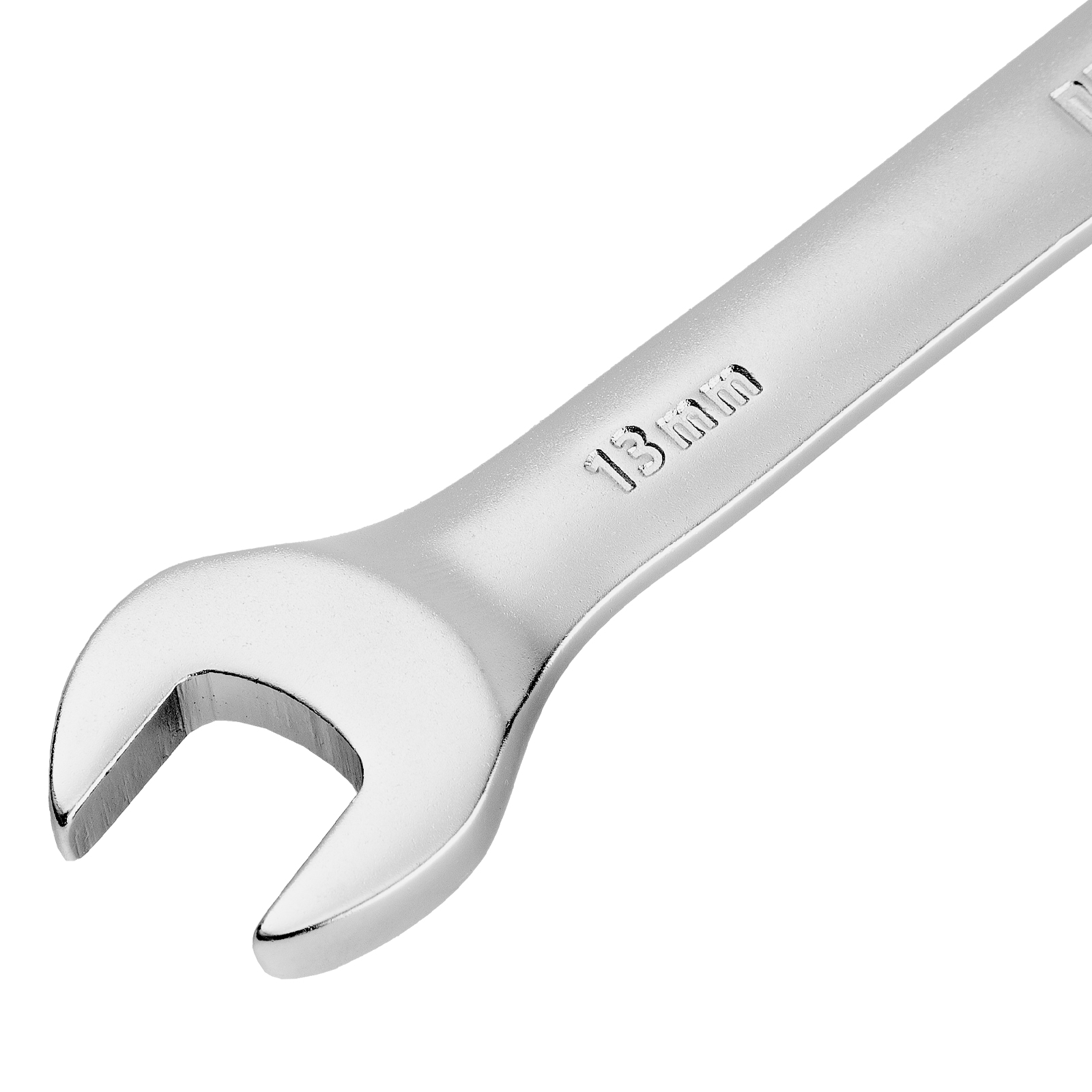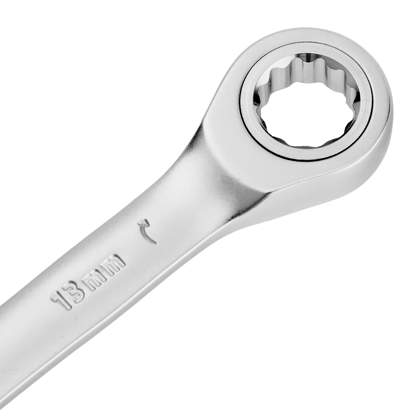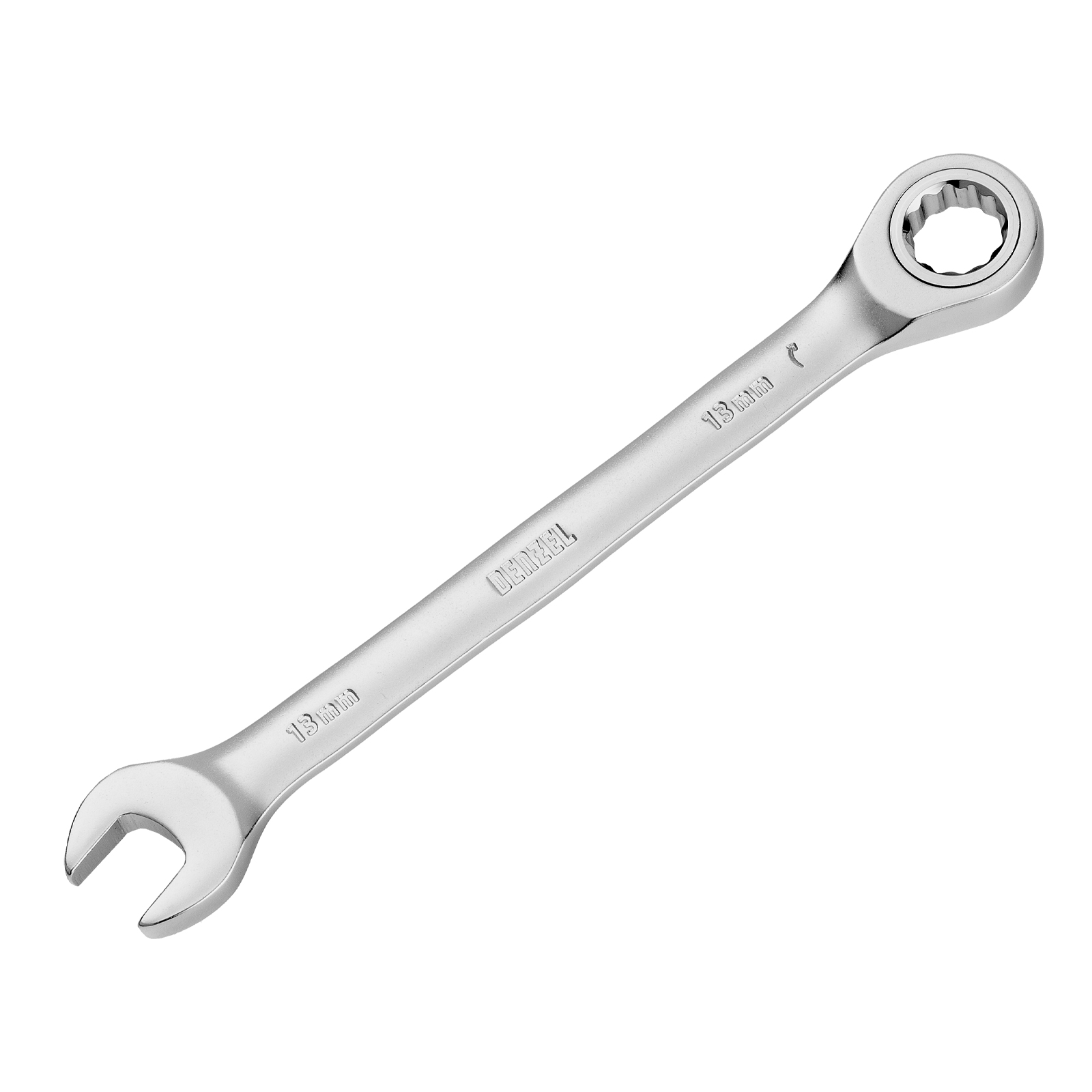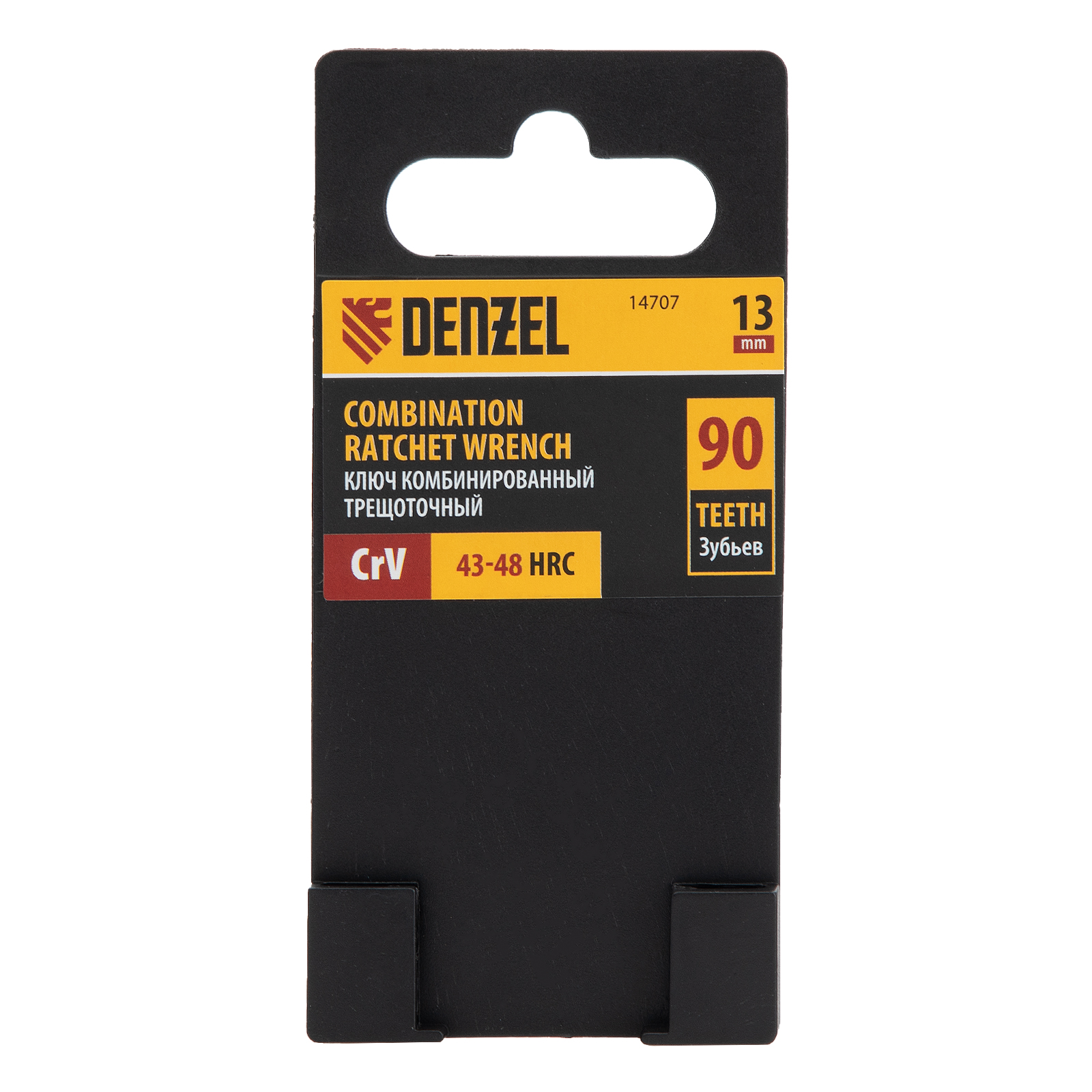 Комбинированный трещоточный ключ Denzel 14707 из стали CrV, с защитным покрытием «матовый хром», предназначен для работы с резьбовым крепежом размером 13 мм. Рожковый профиль упрощает работу в местах, где использование накидной рабочей части невозможно. 12-гранный профиль кольцевой части подходит для крепежа с разным профилем. Хромированное кольцо обеспечивает сохранность и долговечность инструмента. Ключ будет полезен дома, в мастерской и гараже.