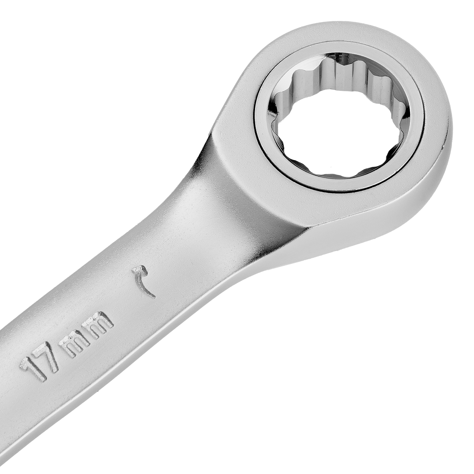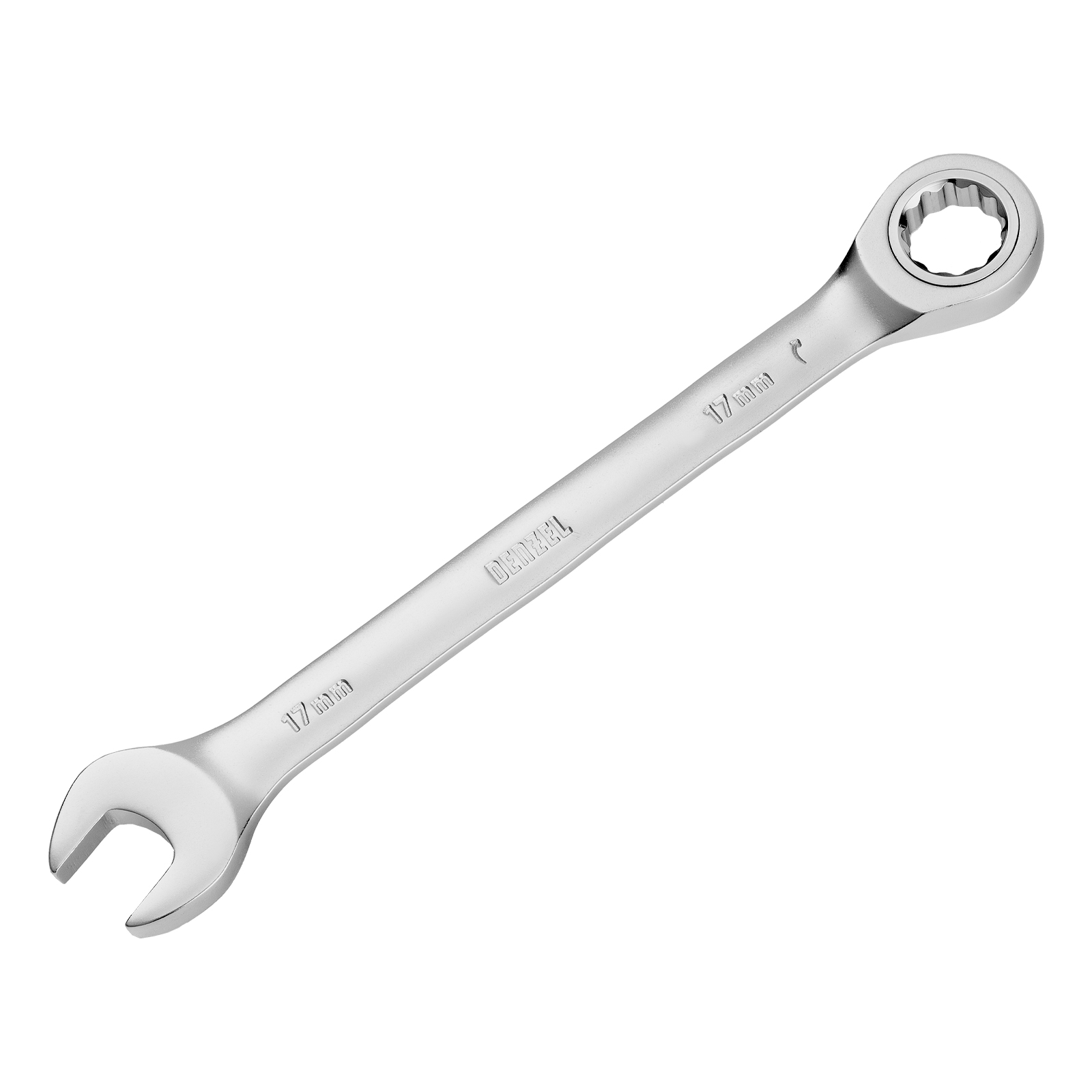 Комбинированный трещоточный ключ Denzel 14711 из стали CrV, с защитным покрытием «матовый хром», предназначен для работы с резьбовым крепежом размером 17 мм. Рожковый профиль упрощает работу в местах, где использование накидной рабочей части невозможно. Хромированное кольцо обеспечивает сохранность и долговечность инструмента. Ключ будет полезен дома, в мастерской и гараже.