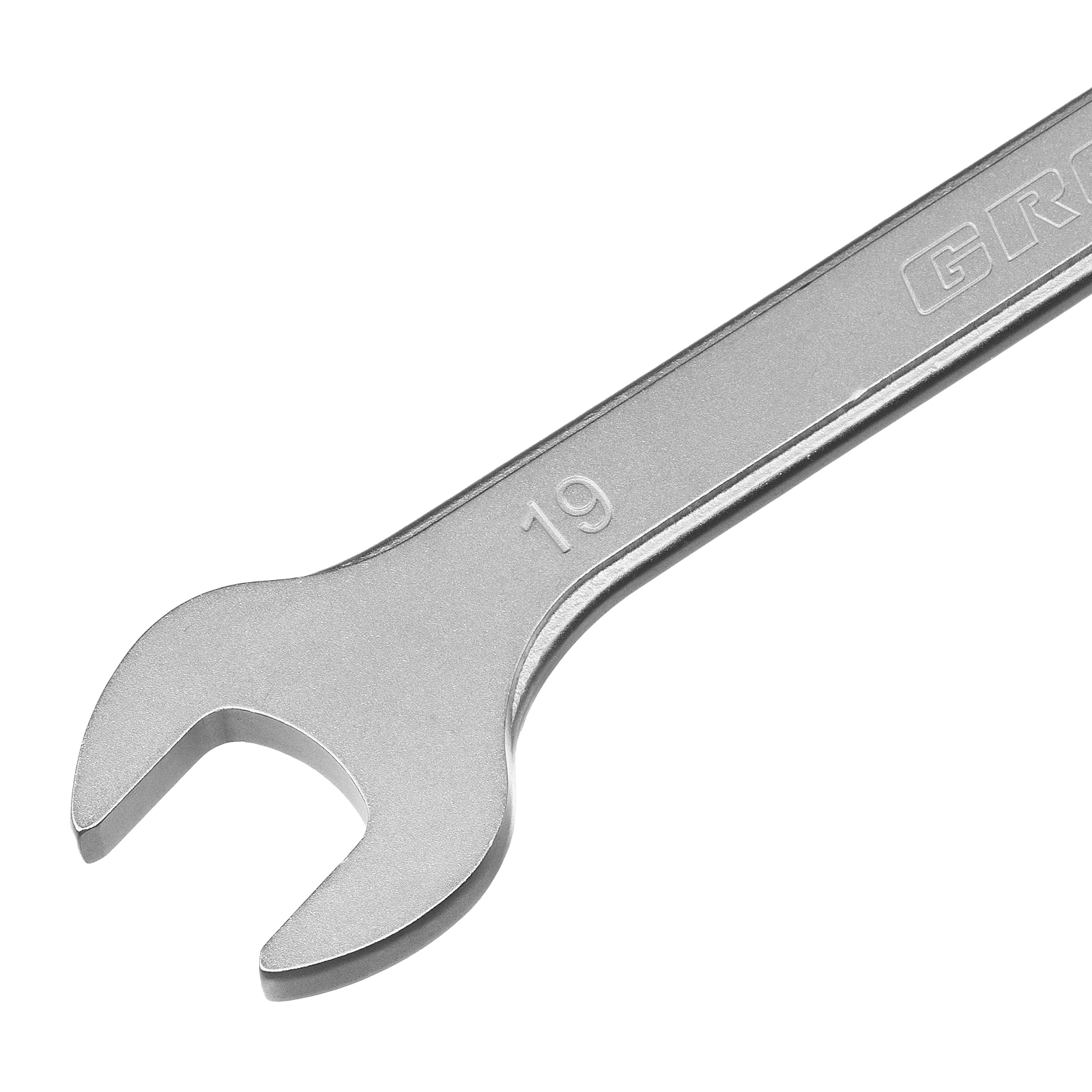 Комбинированный трещоточный ключ Gross 14857, 19 мм, используется при монтаже и демонтаже резьбовых соединений. Инструмент имеет как рожковую, так и накидную часть, что повышает его функциональность. У накидной части 12 внутренних граней, что увеличивает площадь соприкосновения с головкой крепежа и снижает риск ее деформации. Ключ применяется как в автосервисах, так и для самостоятельного ремонта автомобилей.