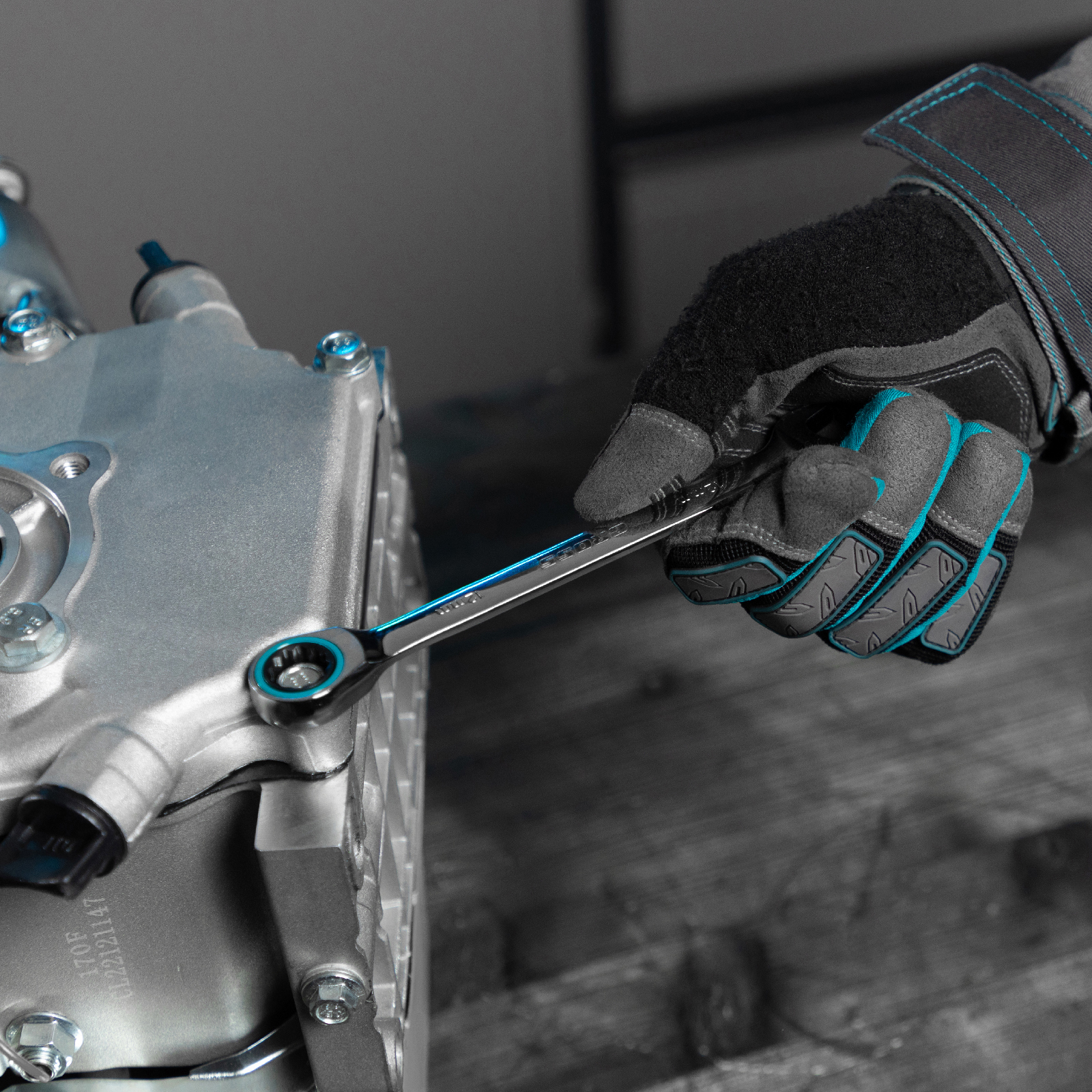 - Удобная работа даже в труднодоступных местах — храповой механизм с 72 зубцами обеспечивает плавную и быструю работу с резьбовыми соединениями (угол отклонения трещотки составляет всего 5 градусов).