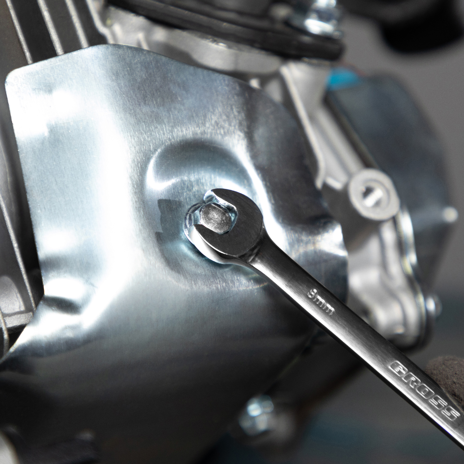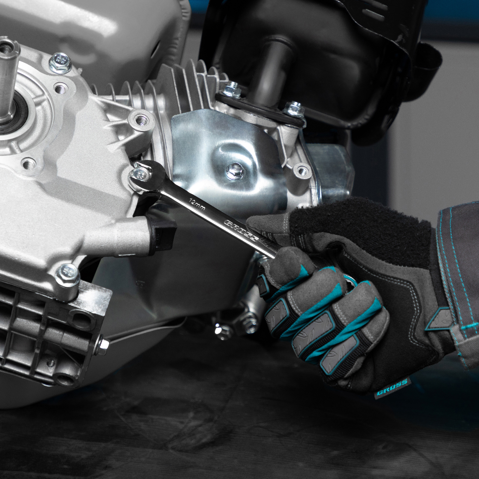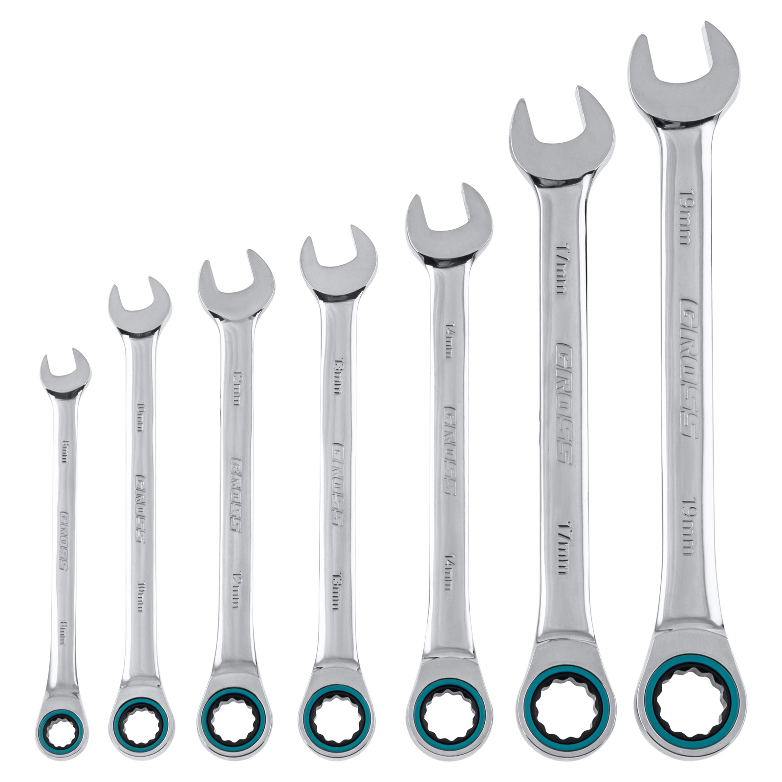 Набор комбинированных ключей с трещоткой Gross 14890 используется для монтажа и демонтажа болтов и гаек и включает 7 инструментов размером от 8 до 19 мм, выполненных из стали CrV. Каждый из них имеет две рабочие головки — рожковую и накидную, что расширяет возможности применения. У накидной головки 12-гранный профиль, благодаря чему она надежно захватывает крепеж. Набор подходит как для профессионального, так и для самостоятельного ремонта автомобилей.