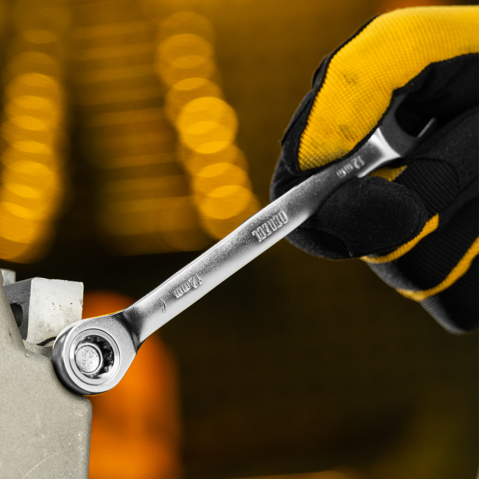 - Аккуратная работа — 12-гранная накидная часть увеличивает площадь соприкосновения с головкой крепежа и снижает риск ее деформации.