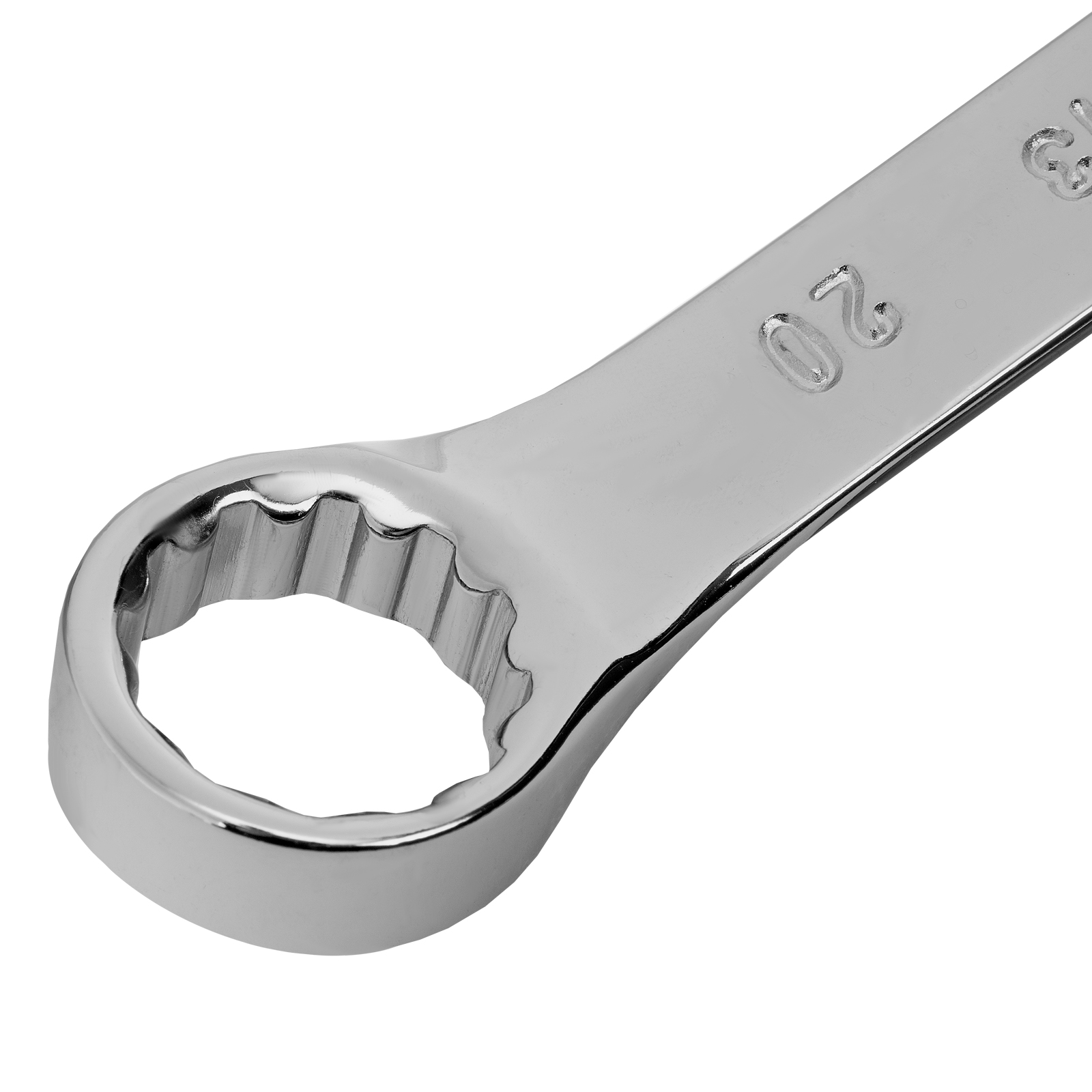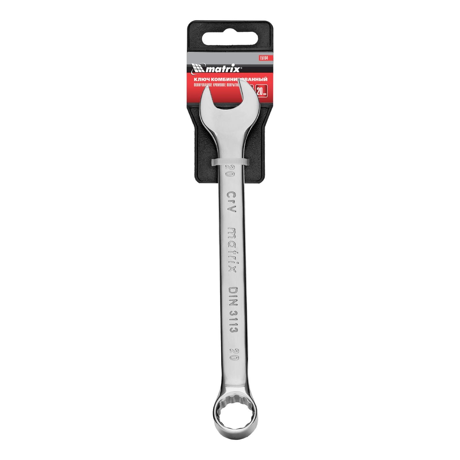 Комбинированный ключ Matrix 15164 размером 20 мм, из стали CrV, с покрытием «полированный хром», пригодится во время ремонтных работ дома или в гараже. С его помощью можно быстро монтировать и демонтировать крепежные элементы. Угол наклона кольцевого зева относительно плоскости инструмента составляет 15°, поэтому ключом удобно работать в труднодоступных местах.
