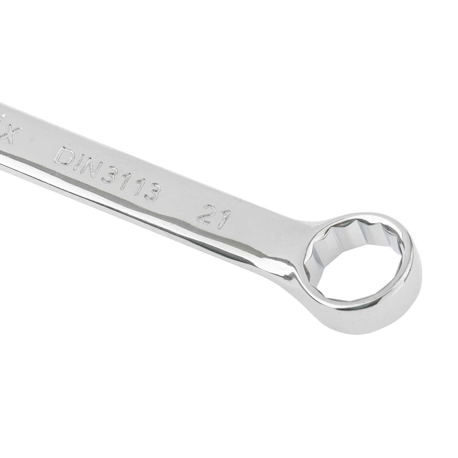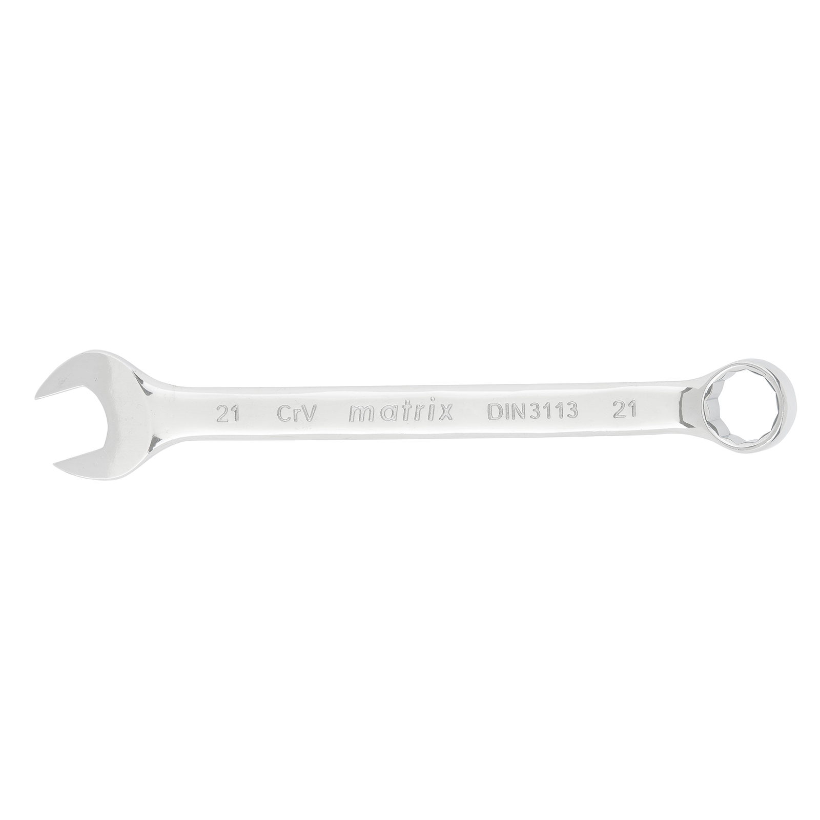Комбинированный ключ Matrix 15165 размером 21 мм, из стали CrV, с покрытием «полированный хром», пригодится во время ремонтных работ дома или в гараже. С его помощью можно быстро монтировать и демонтировать крепежные элементы. Угол наклона кольцевого зева относительно плоскости инструмента составляет 15°, поэтому ключом удобно работать в труднодоступных местах.
