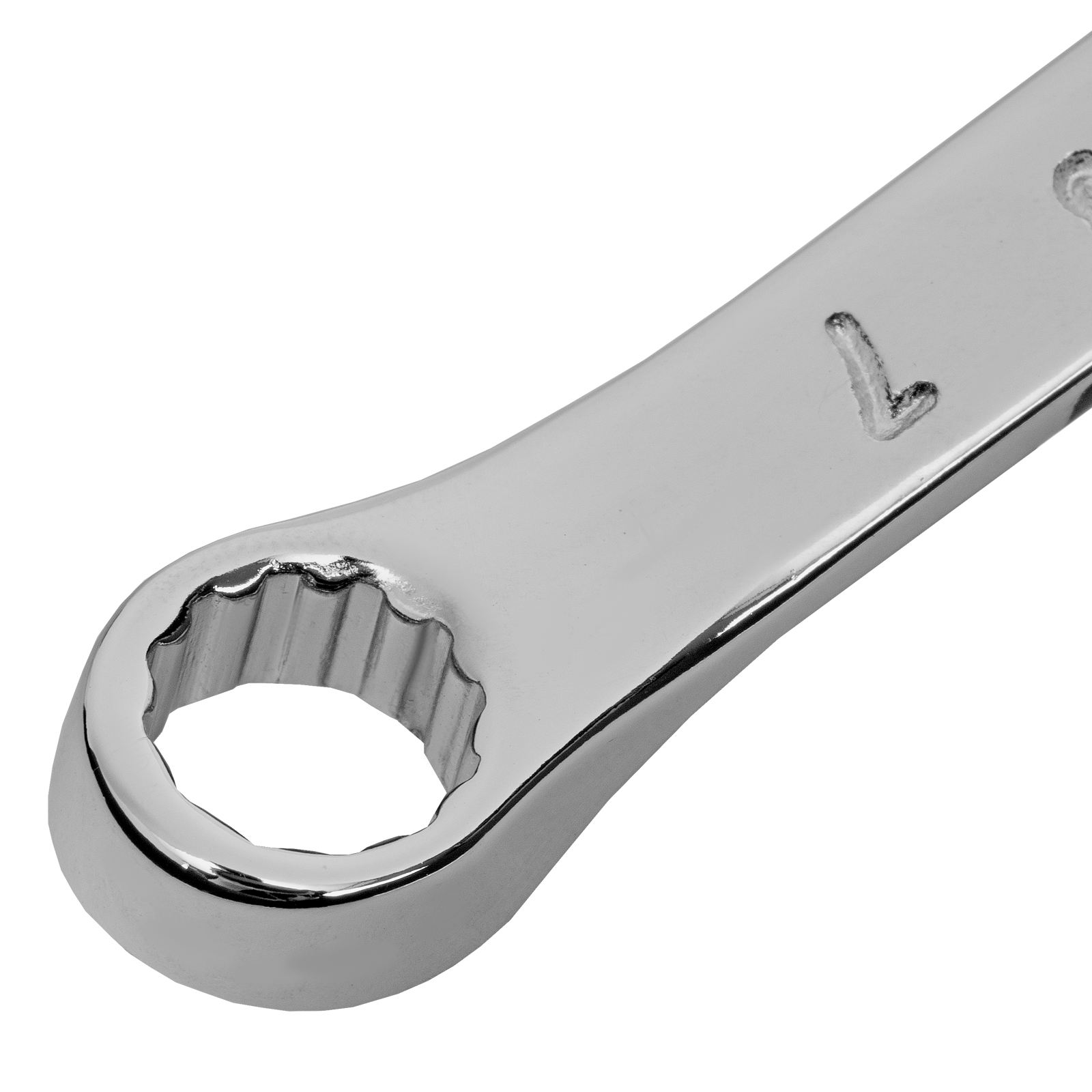 Комбинированный ключ Matrix 15151 размером 7 мм, из стали CrV, с покрытием «полированный хром», пригодится во время ремонтных работ дома или в гараже. С его помощью можно быстро монтировать и демонтировать крепежные элементы. Угол наклона кольцевого зева относительно плоскости инструмента составляет 15°, поэтому ключом удобно работать в труднодоступных местах.
