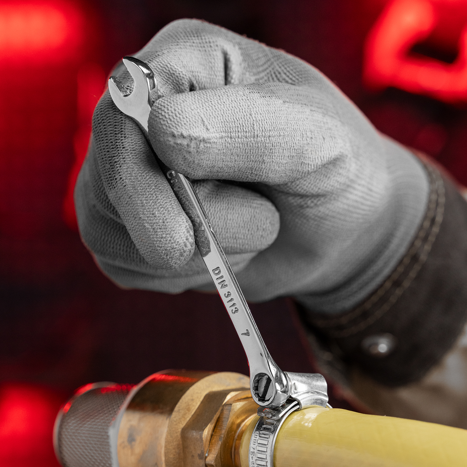 - Аккуратная работа — накидные части с 12-гранным профилем охватывают всю поверхность крепежа, уменьшая риск деформации его граней.