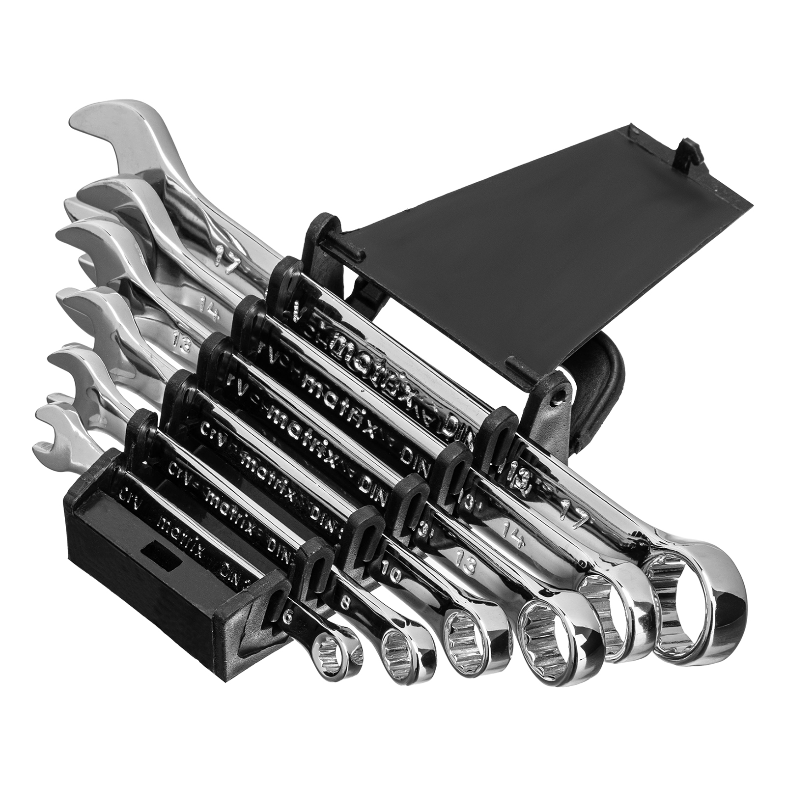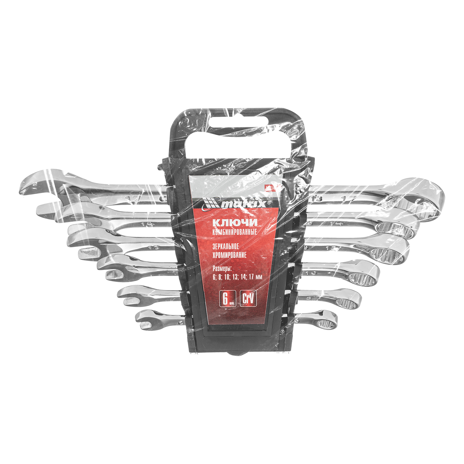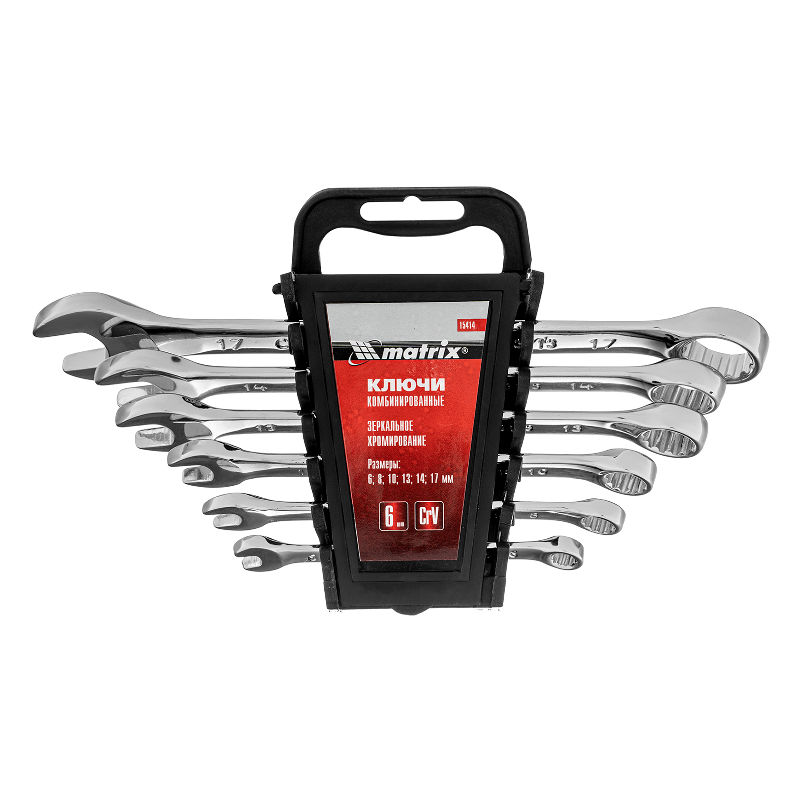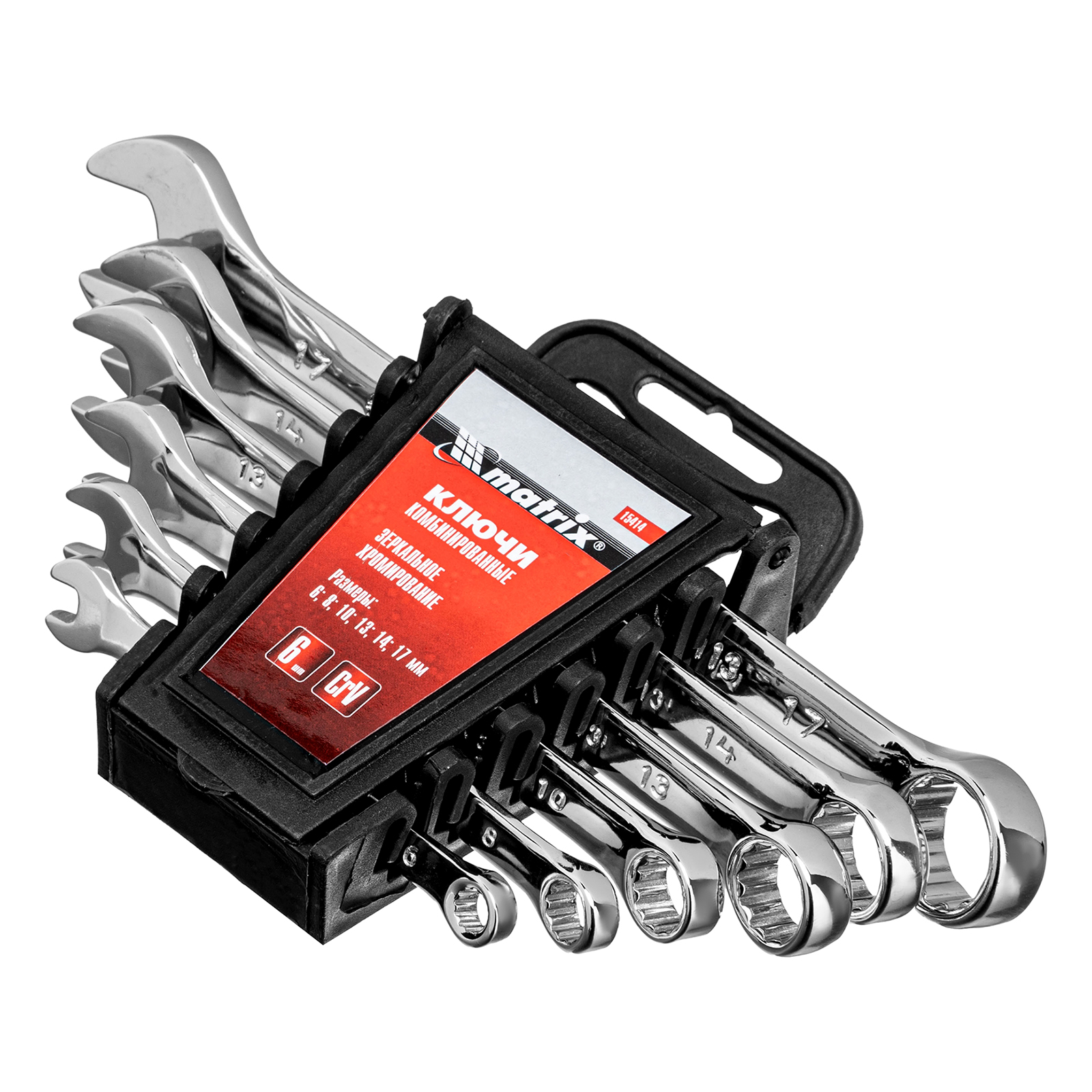 Набор Matrix 15414 включает 6 комбинированных ключей из стали CrV, размером 6-17 мм, с покрытием «полированный хром», которые пригодятся во время ремонтных работ дома или в гараже. С их помощью можно быстро монтировать и демонтировать крепежные элементы. В набор входят инструменты основных типоразмеров, позволяющие эффективно решать поставленные задачи.