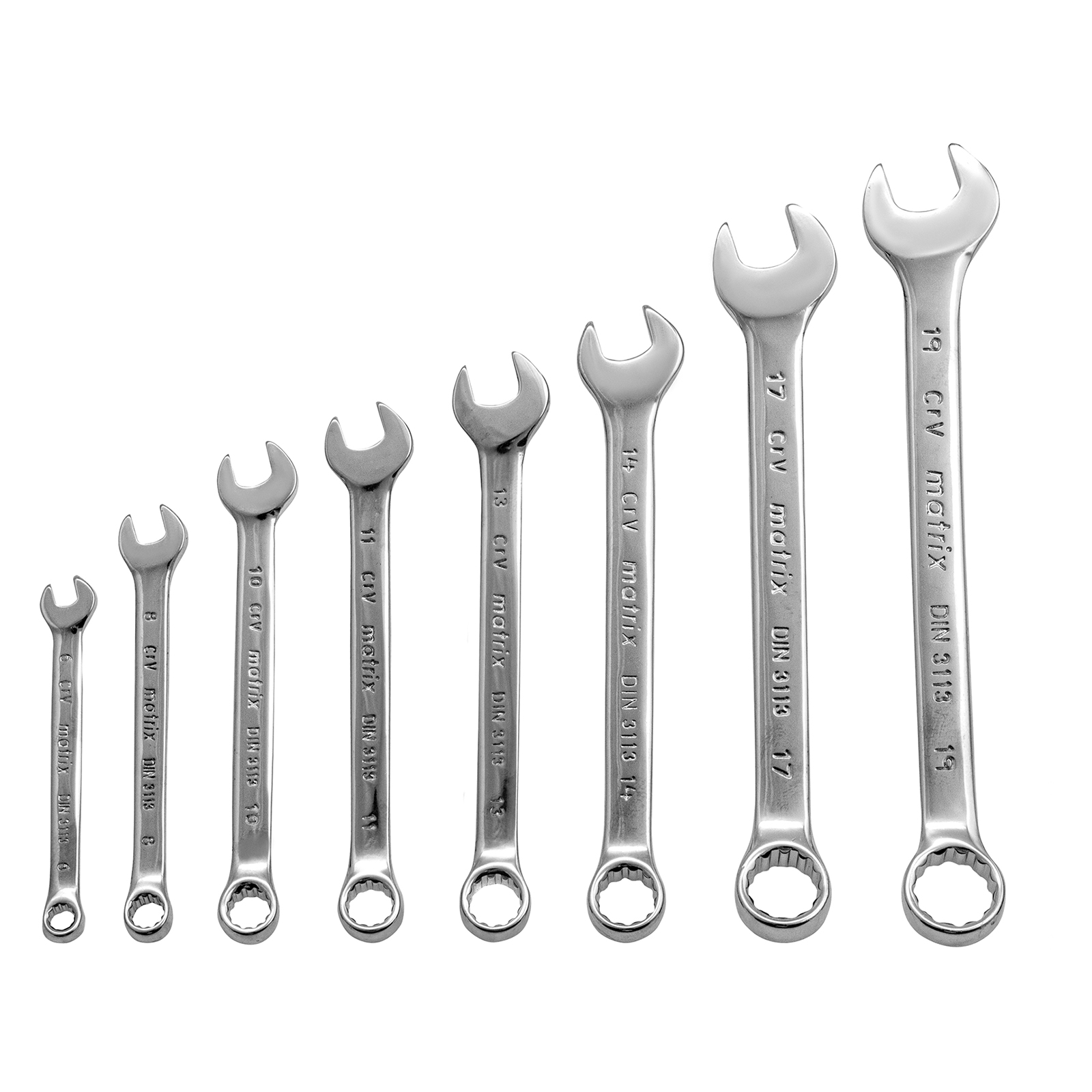 Набор Matrix 15422 включает 8 комбинированных ключей из стали CrV, размером 6-19 мм, с покрытием «полированный хром», которые пригодятся во время ремонтных работ дома или в гараже. С их помощью можно быстро монтировать и демонтировать крепежные элементы. В набор входят инструменты основных типоразмеров, позволяющие эффективно решать поставленные задачи.
