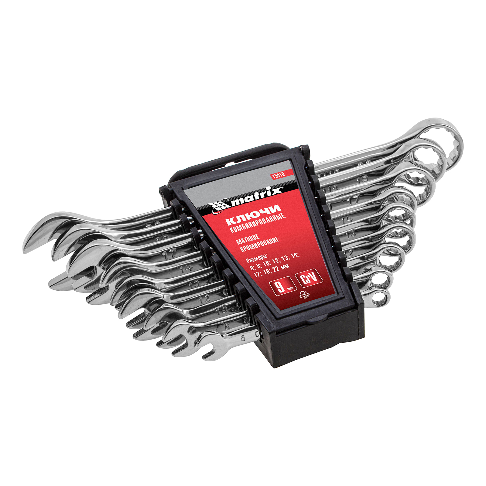 Набор Matrix 15410 включает 9 комбинированных ключей из стали CrV, размером 6-22 мм, с покрытием «матовый хром», которые пригодятся во время ремонтных работ дома или в гараже. С их помощью можно быстро монтировать и демонтировать крепежные элементы. В набор входят инструменты основных типоразмеров, позволяющие эффективно решать поставленные задачи.