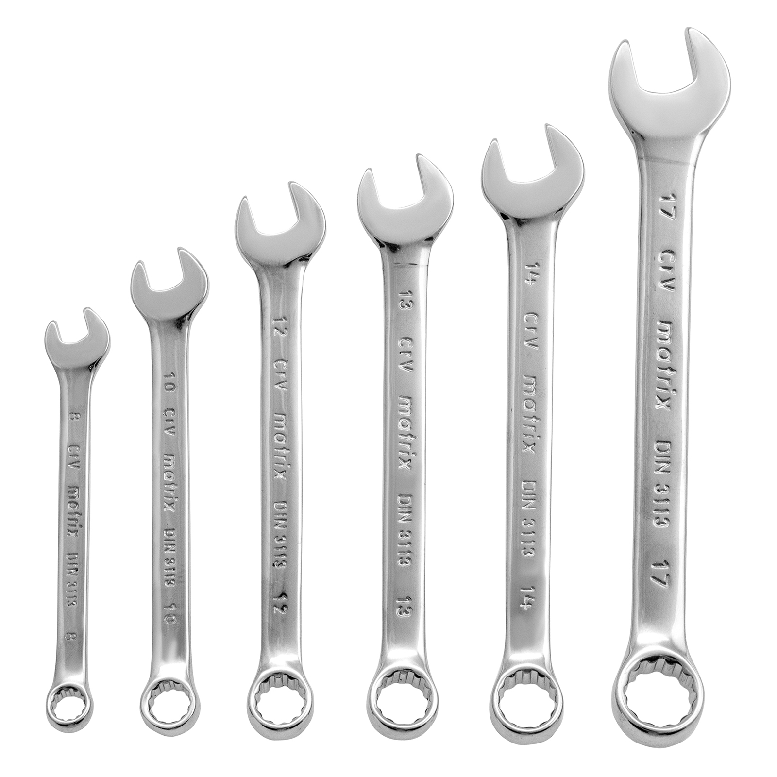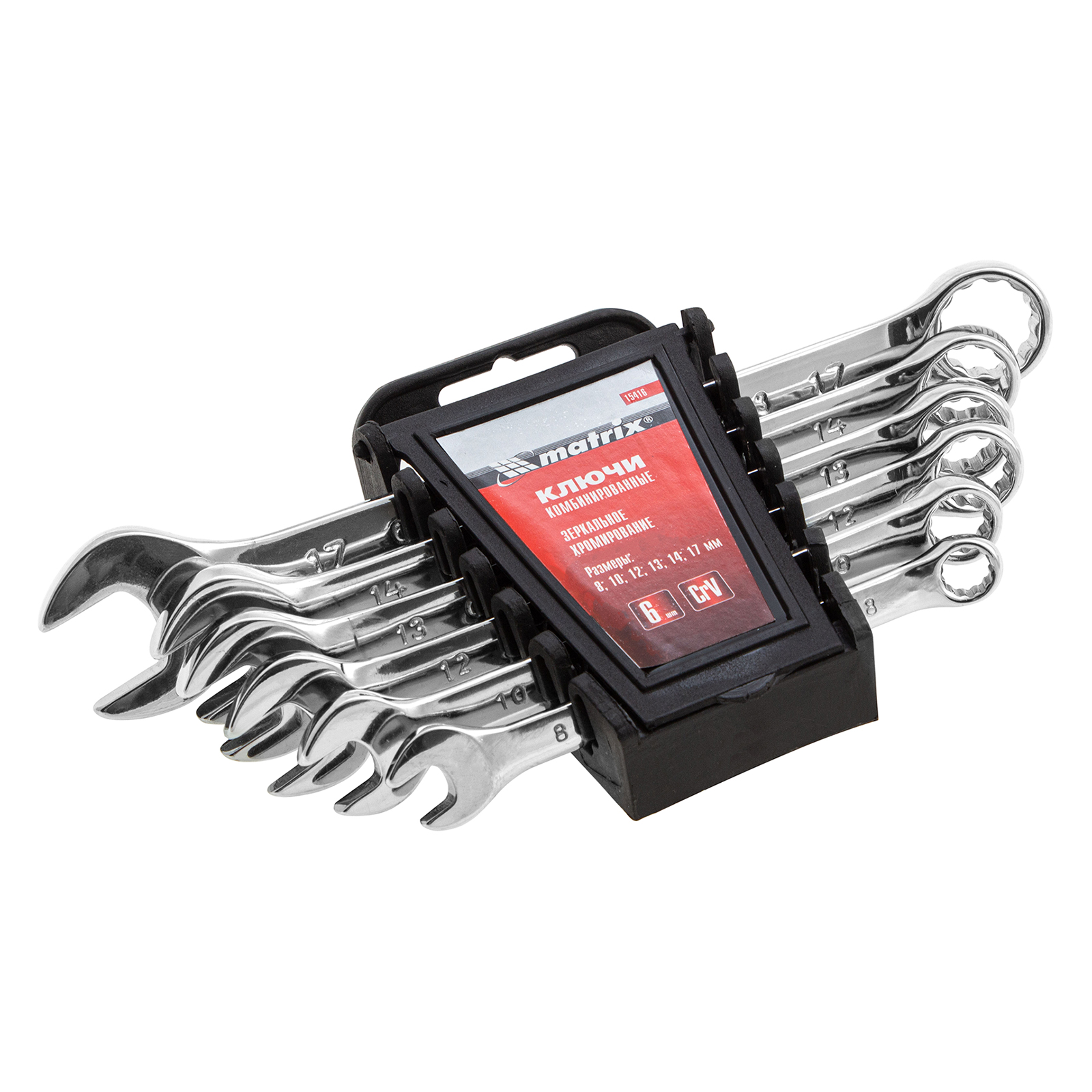 Набор Matrix 15416 включает 6 комбинированных ключей из стали CrV, размером 8-17 мм, с покрытием «полированный хром», которые пригодятся во время ремонтных работ дома или в гараже. С их помощью можно быстро монтировать и демонтировать крепежные элементы. В набор входят инструменты основных типоразмеров, позволяющие эффективно решать поставленные задачи.