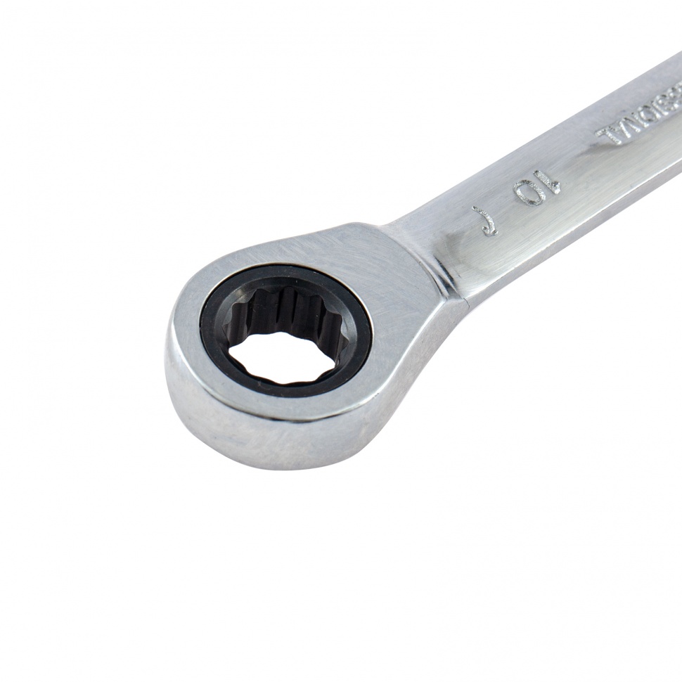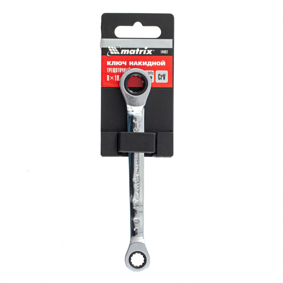 Накидной трещоточный ключ Matrix 14497 из стали CrV, с покрытием из зеркального хрома, пригодится частным мастерам и профессионалам для монтажа и демонтажа резьбовых соединений размером 8 и 10 мм. Ключ будет полезен в гараже, на производстве, строительной площадке, в быту. Трещоточный механизм с 72 зубьями повышает эффективность и скорость закручивания/откручивания болтов, гаек и других крепежей.