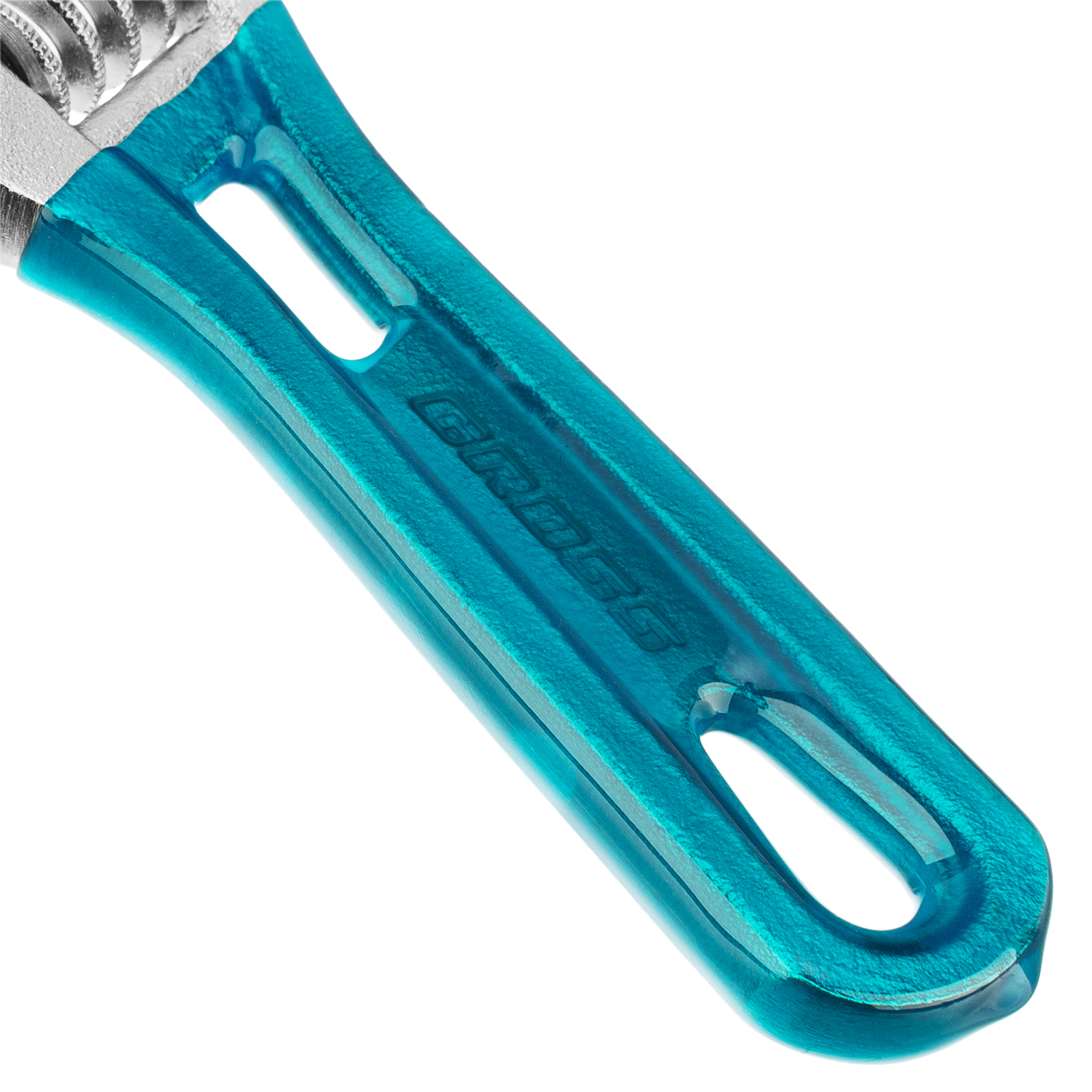 - Укороченная нескользящая рукоятка и тонкие губки — ключом удобно работать в труднодоступных местах.