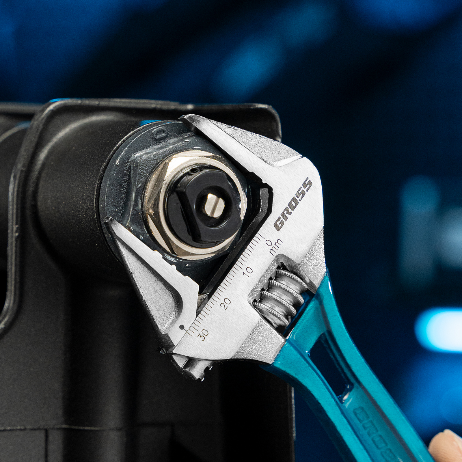 Облегченный разводной ключ Gross 15558 длиной 200 мм, из стали CrV, подходит для работы как с мелкими, так и с крупными крепежными элементами. Максимальный диапазон раскрытия зева составляет 32 мм. Конструкция инструмента усилена благодаря дополнительным ребрам жесткости на рукоятке. Ребристая рабочая поверхность губок обеспечивает надежный захват деталей и повышает точность работы.