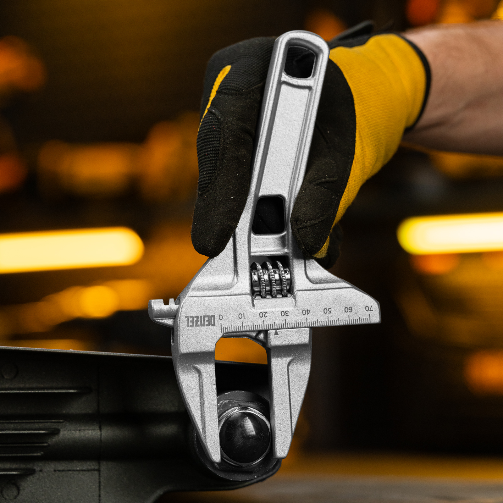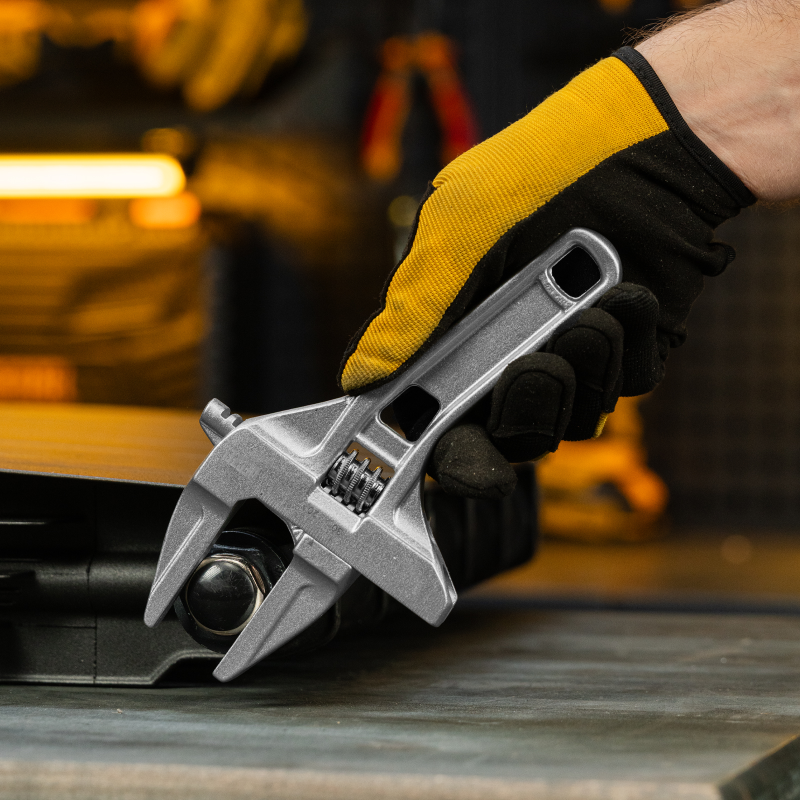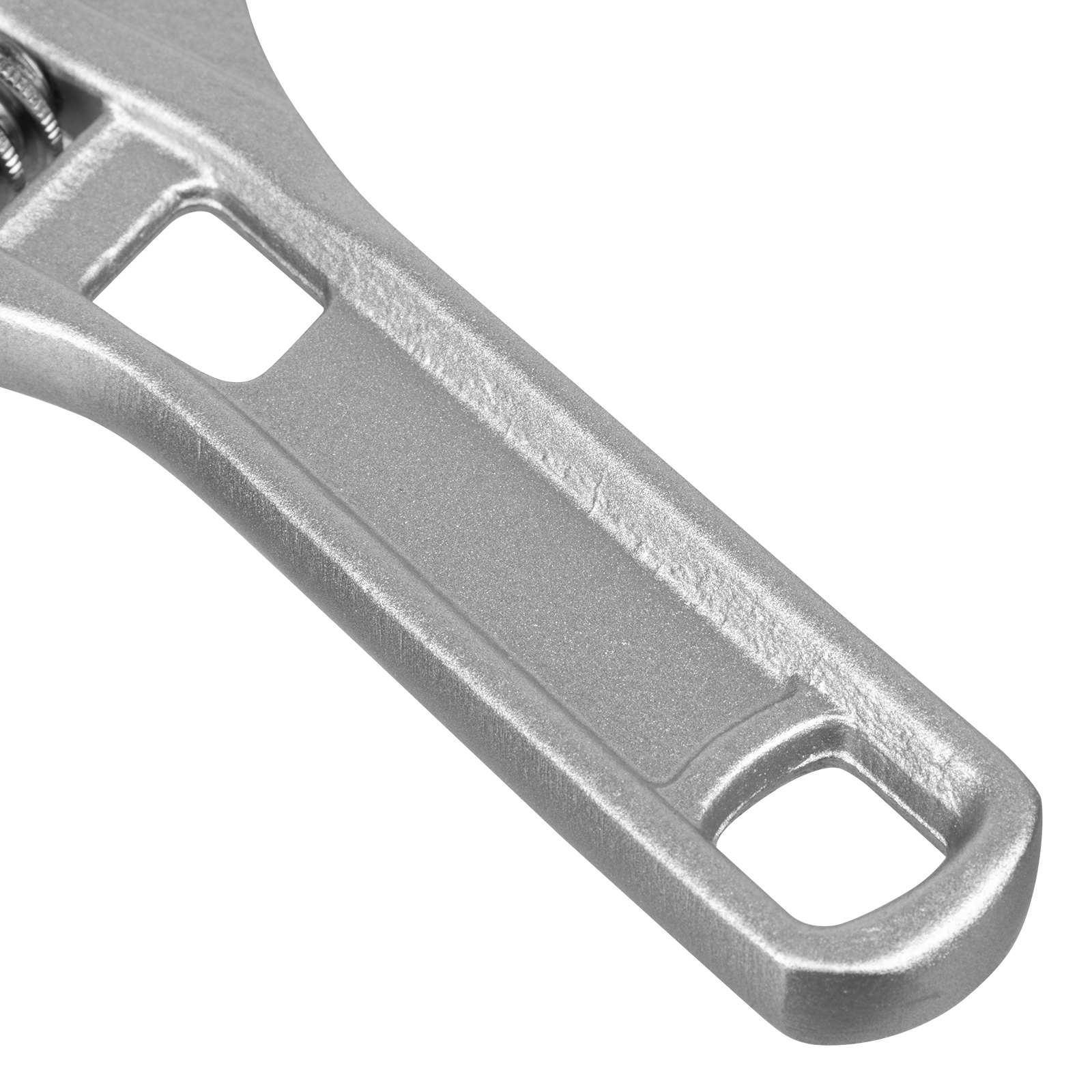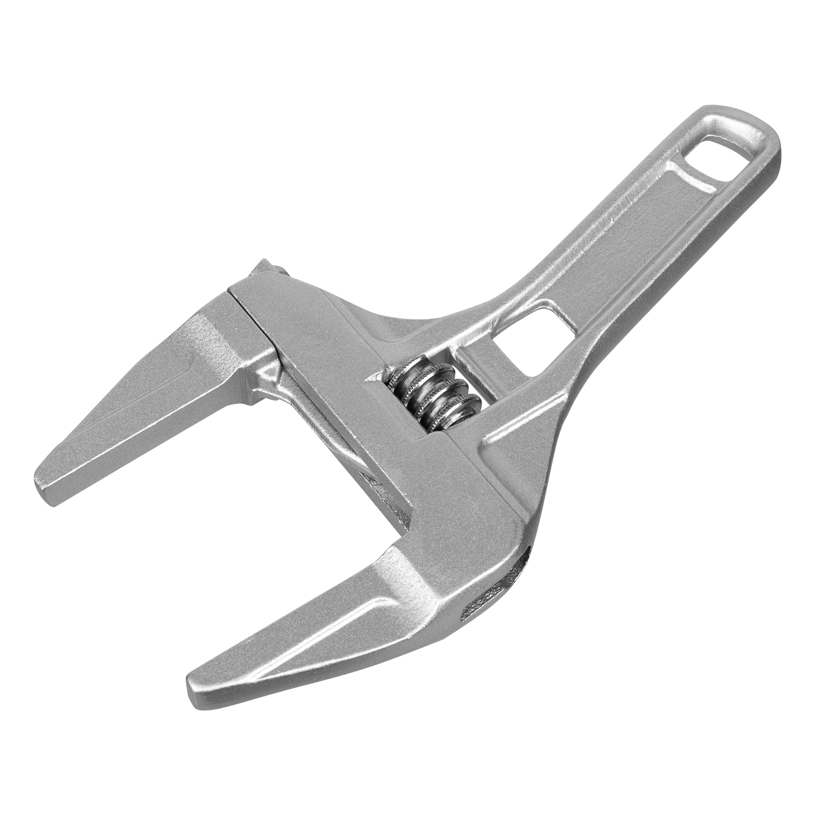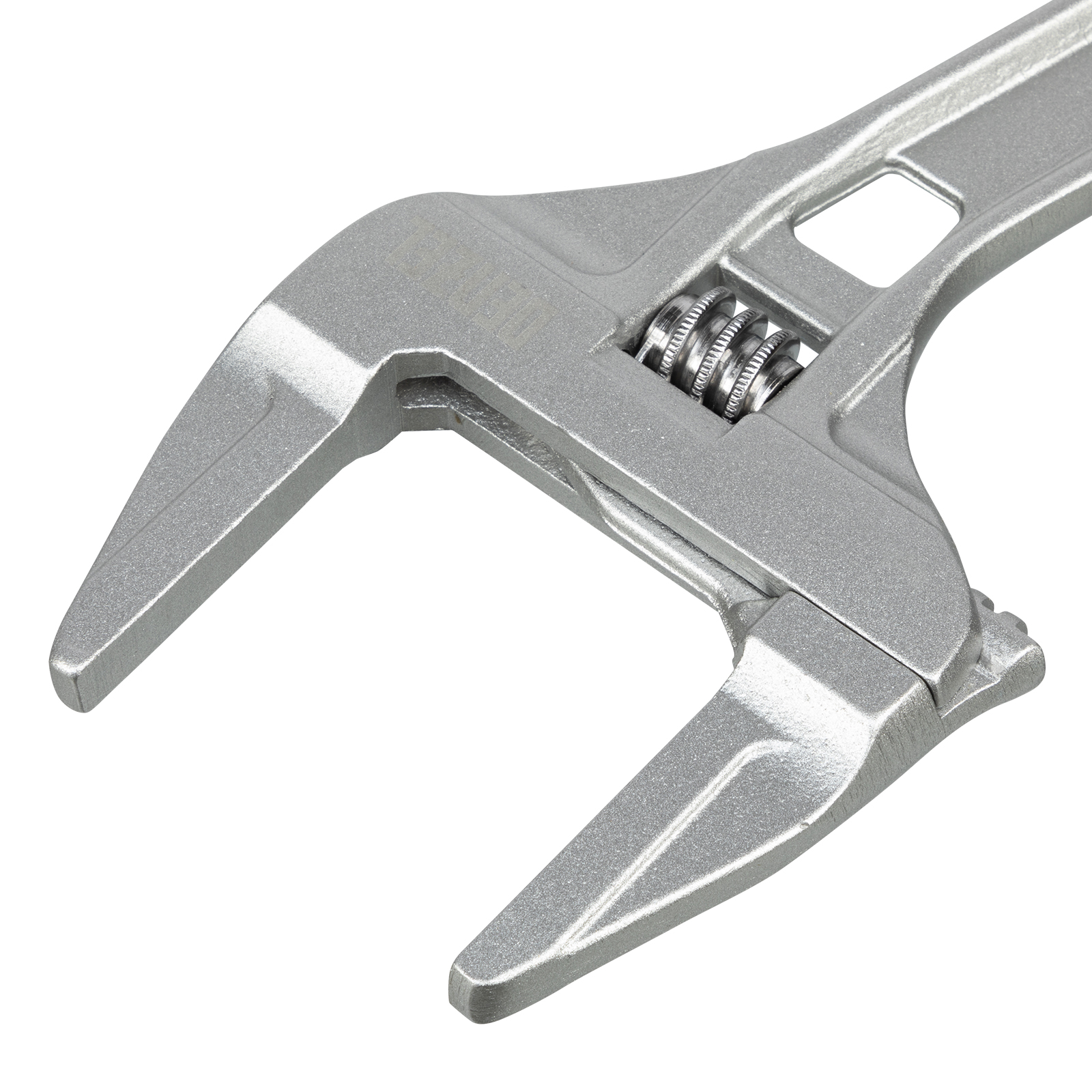 Ключ разводной алюминиевый Denzel 15755 длиной 205 мм, с тонкими губками, оптимален для монтажа и демонтажа хромированных и пластмассовых крепежных элементов. Используется при выполнении сантехнических работ.