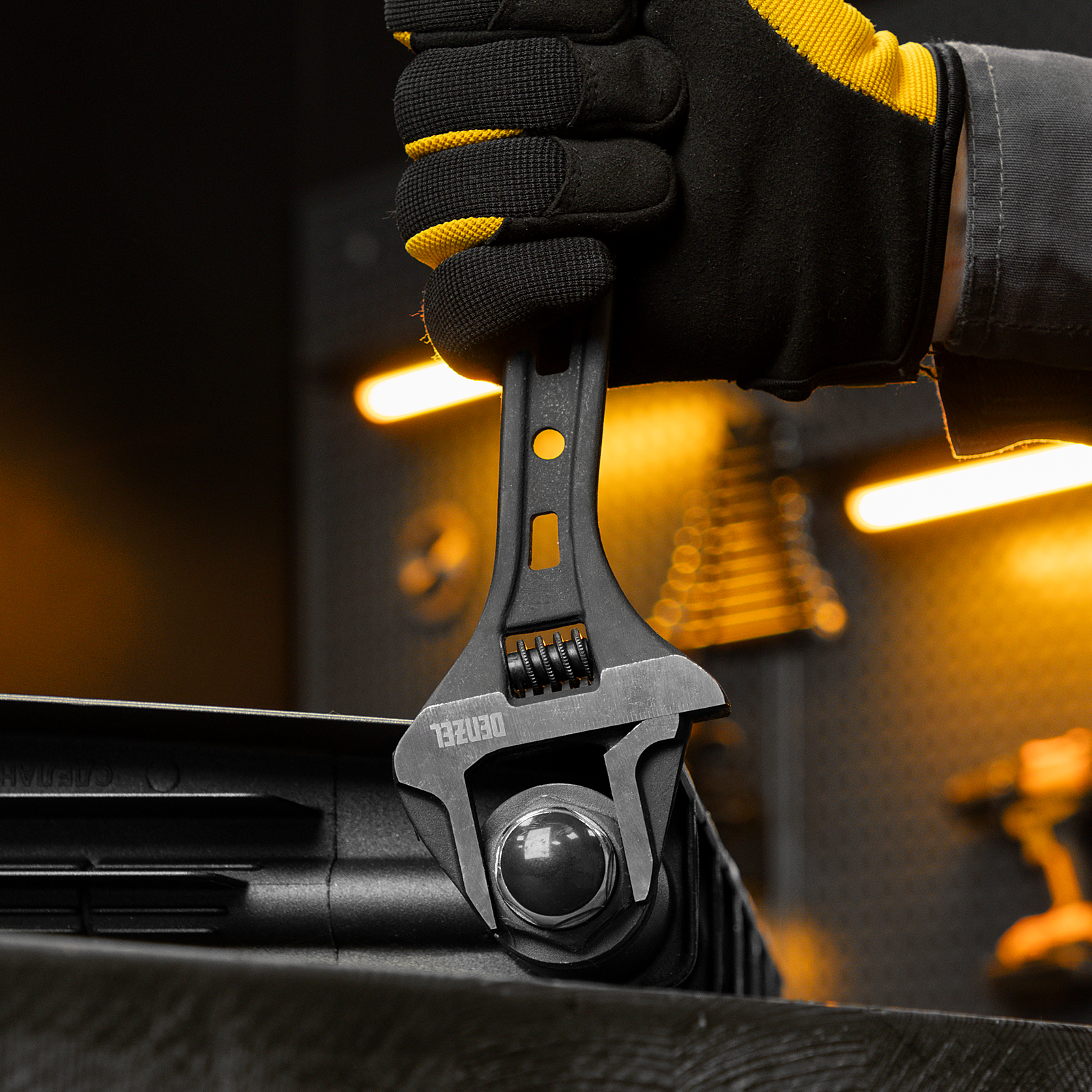 - Удобная эксплуатация — метрическая линейка на ключе помогает выставить нужный размах зева.