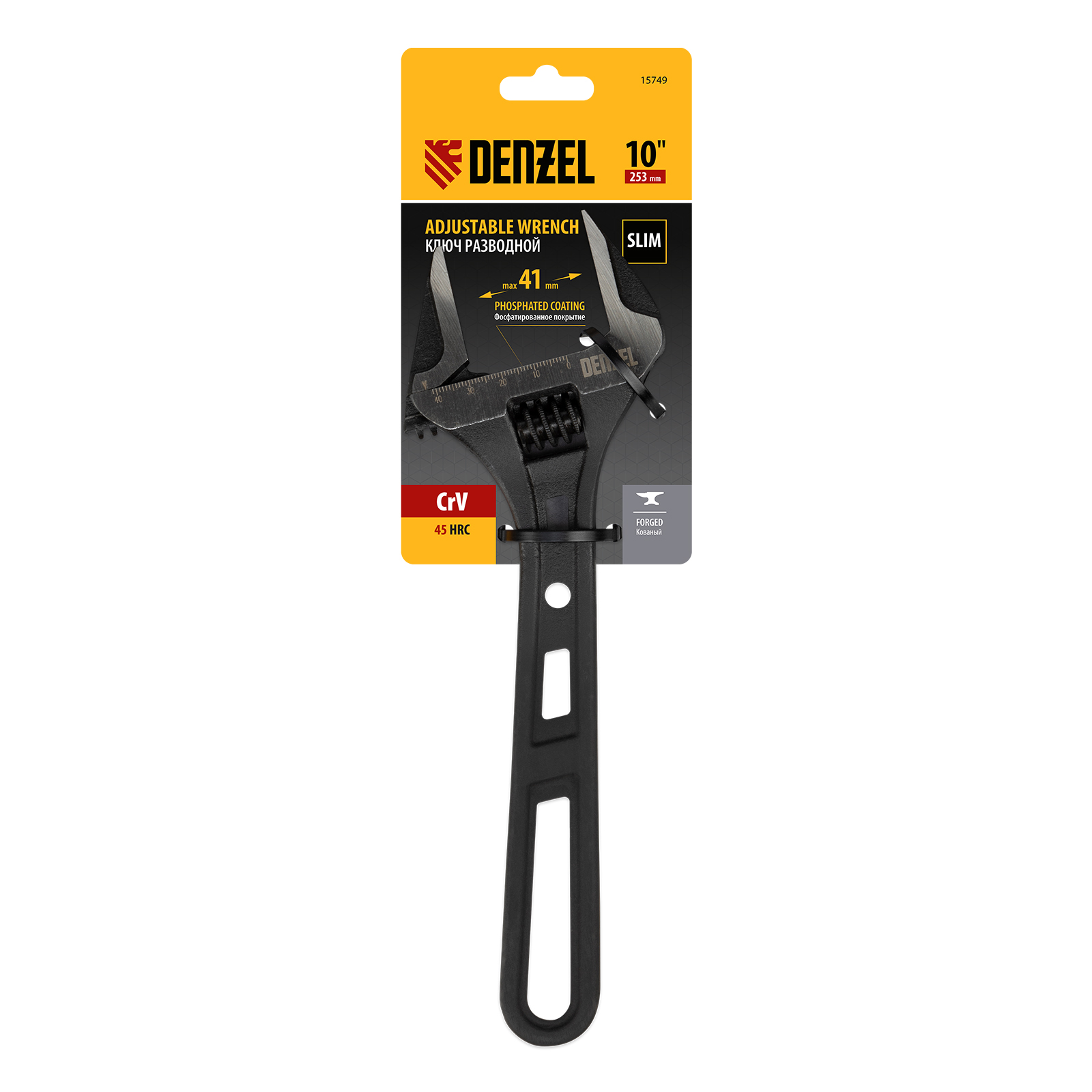 Ключ разводной кованый Denzel 15749 длиной 250 мм, из стали CrV, используется для монтажа и демонтажа крепежных элементов диаметром до 41 мм. Благодаря тонким губкам удобен для работы в труднодоступных местах. Имеет широкую область применения: сантехнические работы, мелкий бытовой ремонт, полупрофессиональная сфера и т. д.