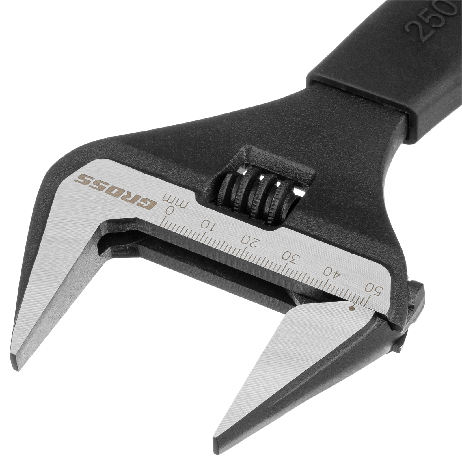 Разводной ключ Gross 15569 из стали CrV, длиной 250 мм, с тонкими губками и защитными насадками, обеспечивает ширину раскрытия губок на 30% больше, чем у стандартных моделей. Инструмент подходит для монтажа и демонтажа крепежных элементов диаметром до 50 мм. Применяется для сантехнических работ, ремонта автомобилей, решения бытовых задач. Тонкие губки легко проникают в труднодоступные места, а также удобны для захвата мелких деталей.
