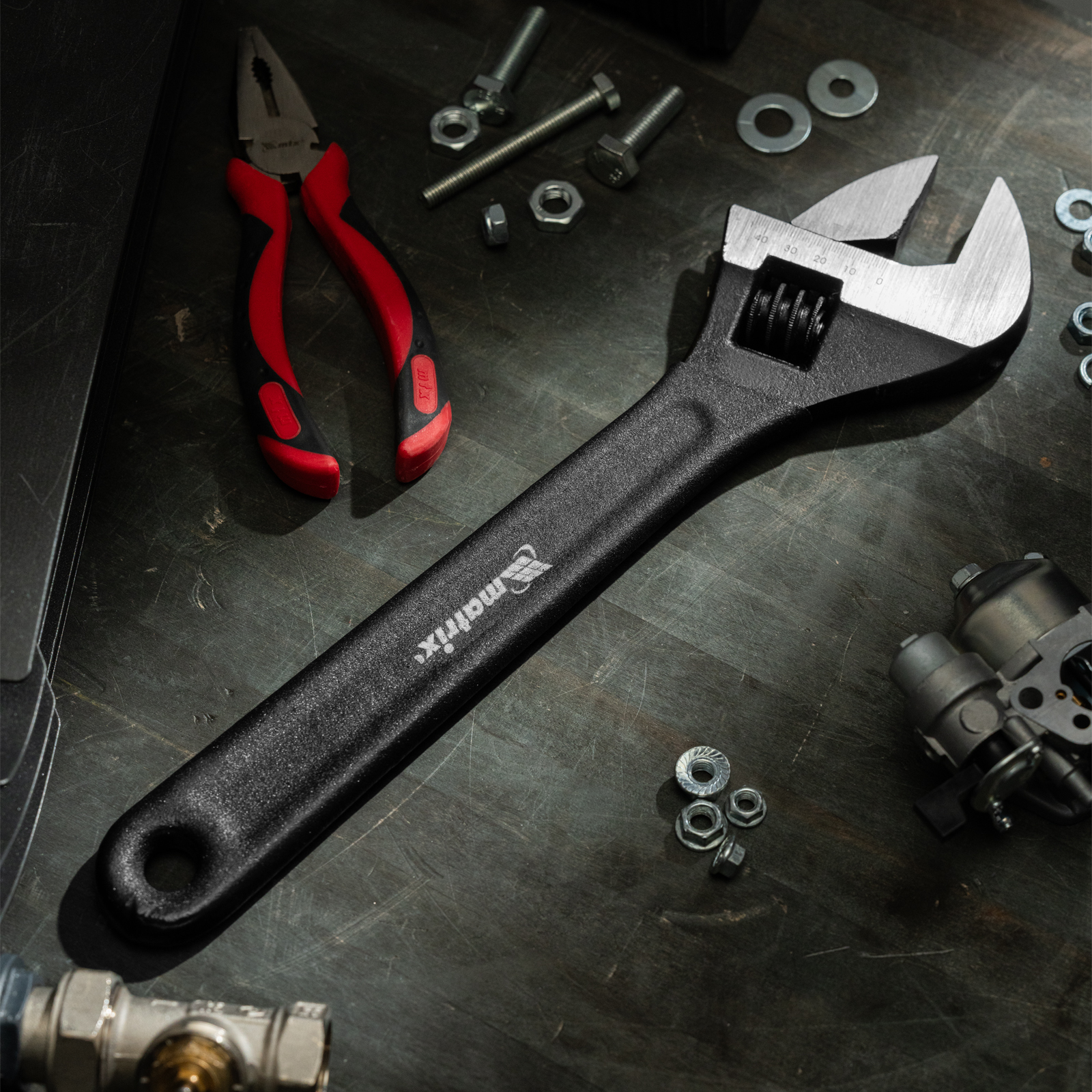 Разводной ключ Matrix 15509 длиной 375 мм используется для монтажа и демонтажа крепежных элементов. Заменяет собой целый комплект обычных гаечных ключей. Губки можно разводить на точно заданное расстояние, что позволяет захватывать детали различного размера. Разводной ключ пригодится для проведения слесарных, сантехнических, ремонтных работ.