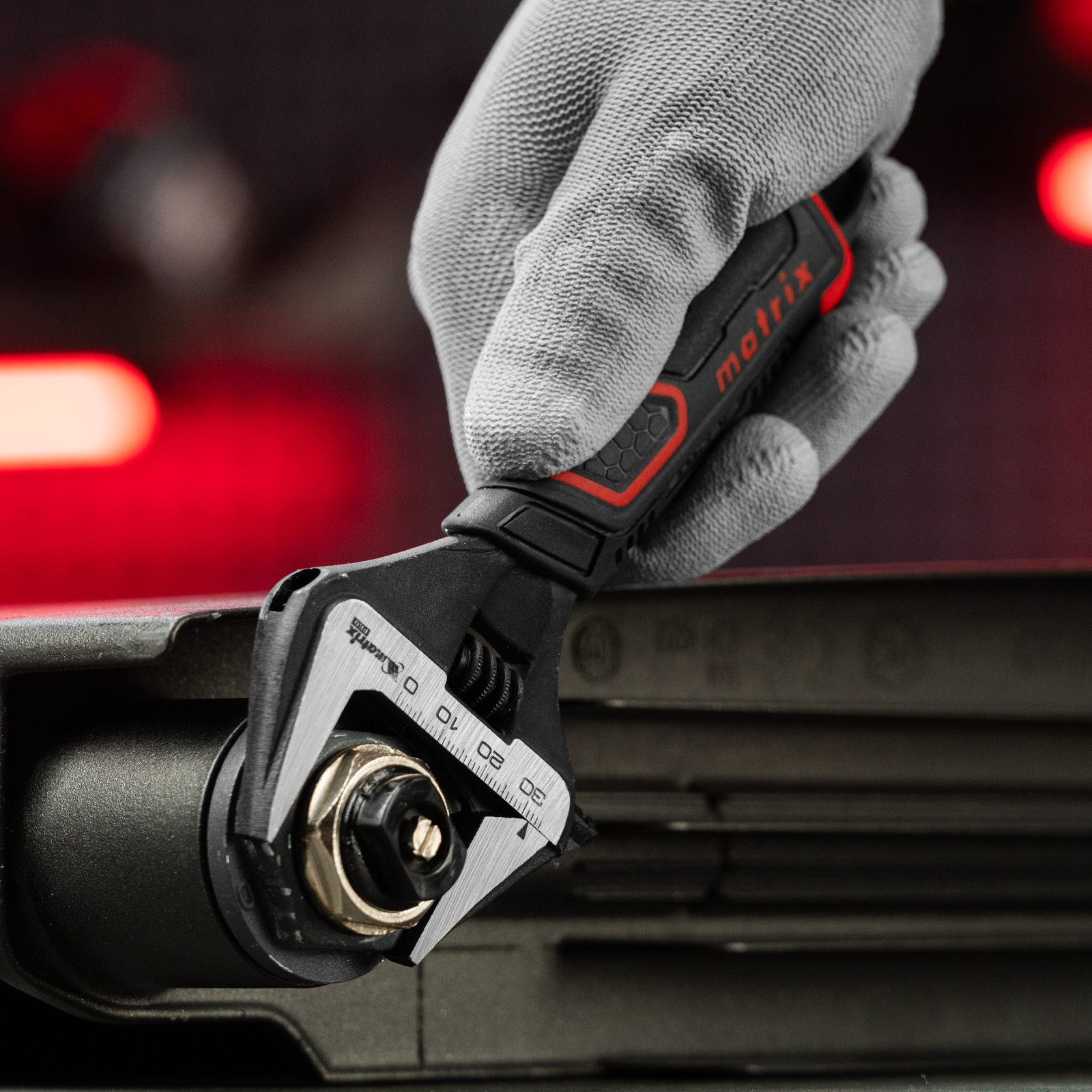 Фосфатированный разводной ключ Matrix PRO 15576 длиной 150 мм, с тонкими губками и двухкомпонентной рукояткой, — профессиональный инструмент, применяется для монтажа и демонтажа крепежных элементов и работы с узкими фитингами. Максимальная ширина раскрытия губок составляет 34 мм, что позволяет работать с деталями разного размера. Благодаря удлиненным тонким губкам инструмент удобен для работы в труднодоступных местах.