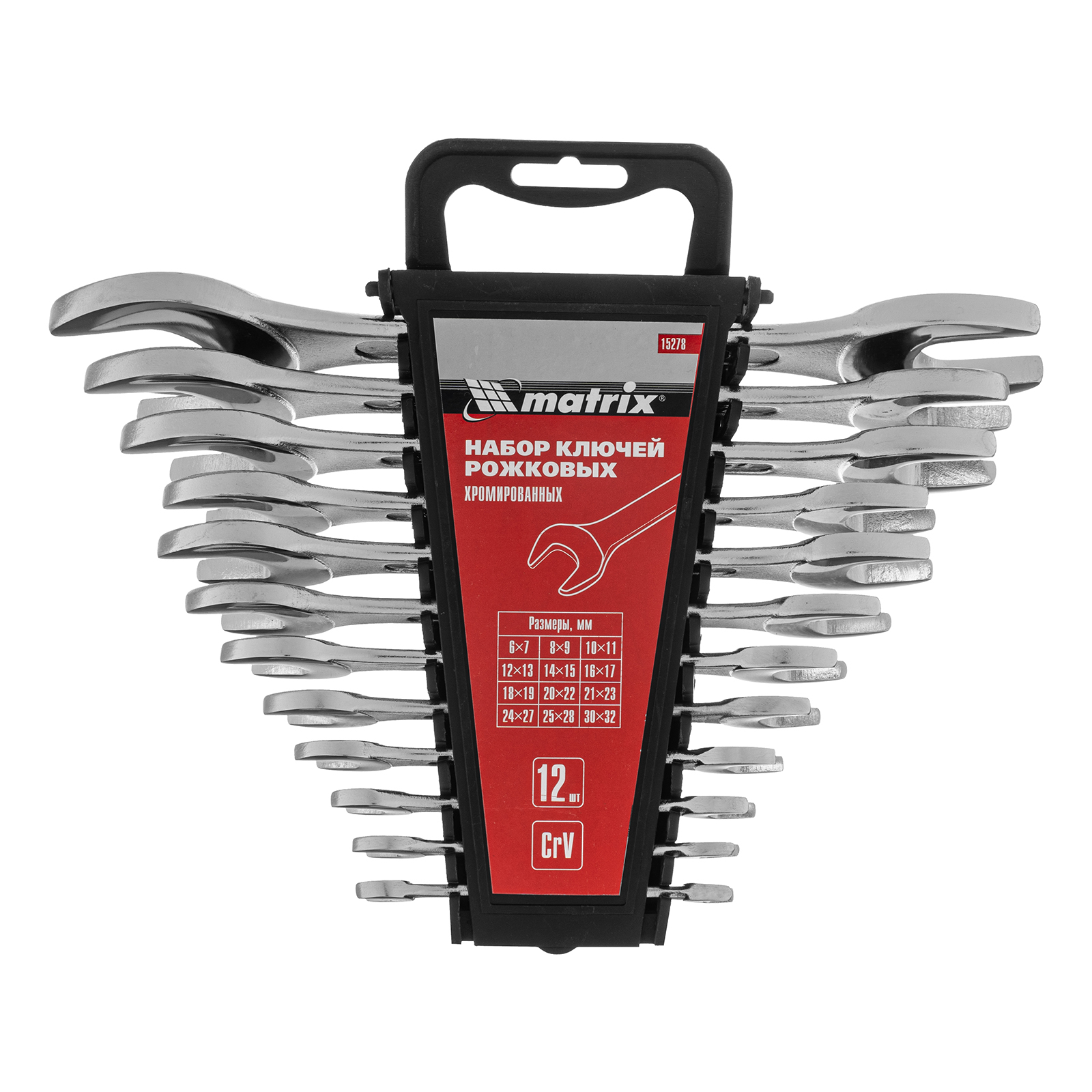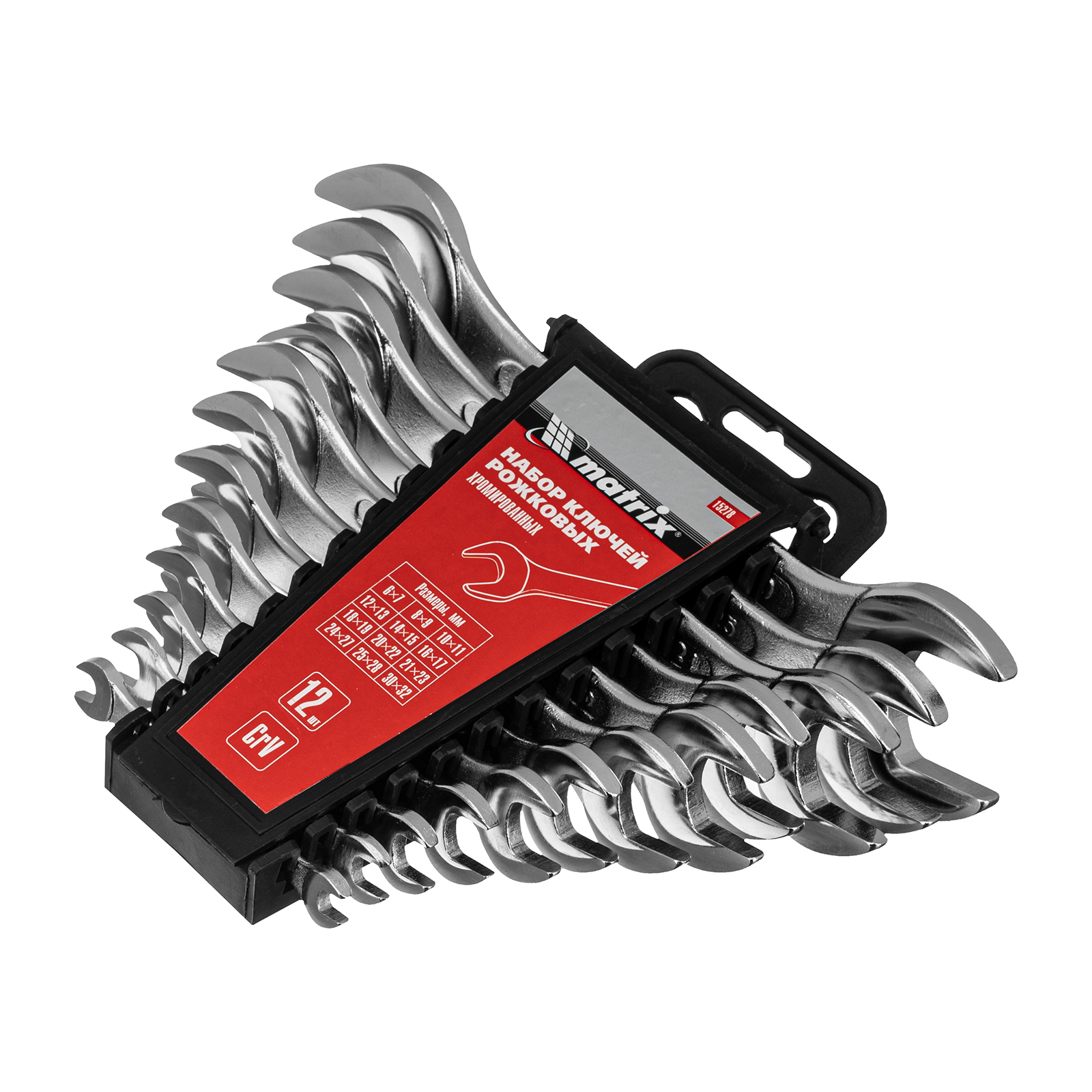 Набор ключей рожковых Matrix 15278 включает в себя 12 хромированных двусторонних ключей с величиной зева от 6 до 32 мм, выполненных из стали CrV. Инструменты используются для монтажа и демонтажа гаечных, болтовых и других резьбовых соединений с шестигранным профилем. Набор удобен для работы в ограниченном пространстве благодаря небольшому наклону губок относительно рукоятки. Ключи пригодятся в слесарной или авторемонтной мастерской, сервисном центре, а также дома, в гараже или на даче.