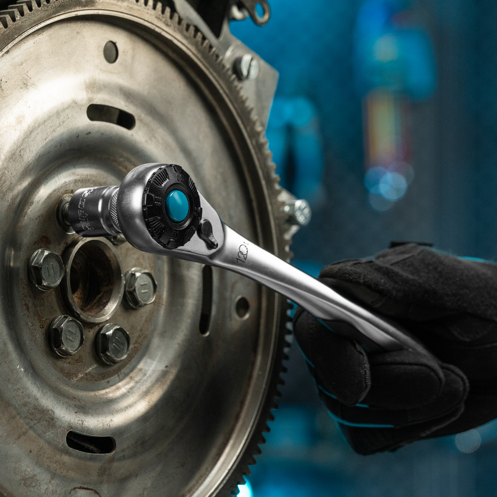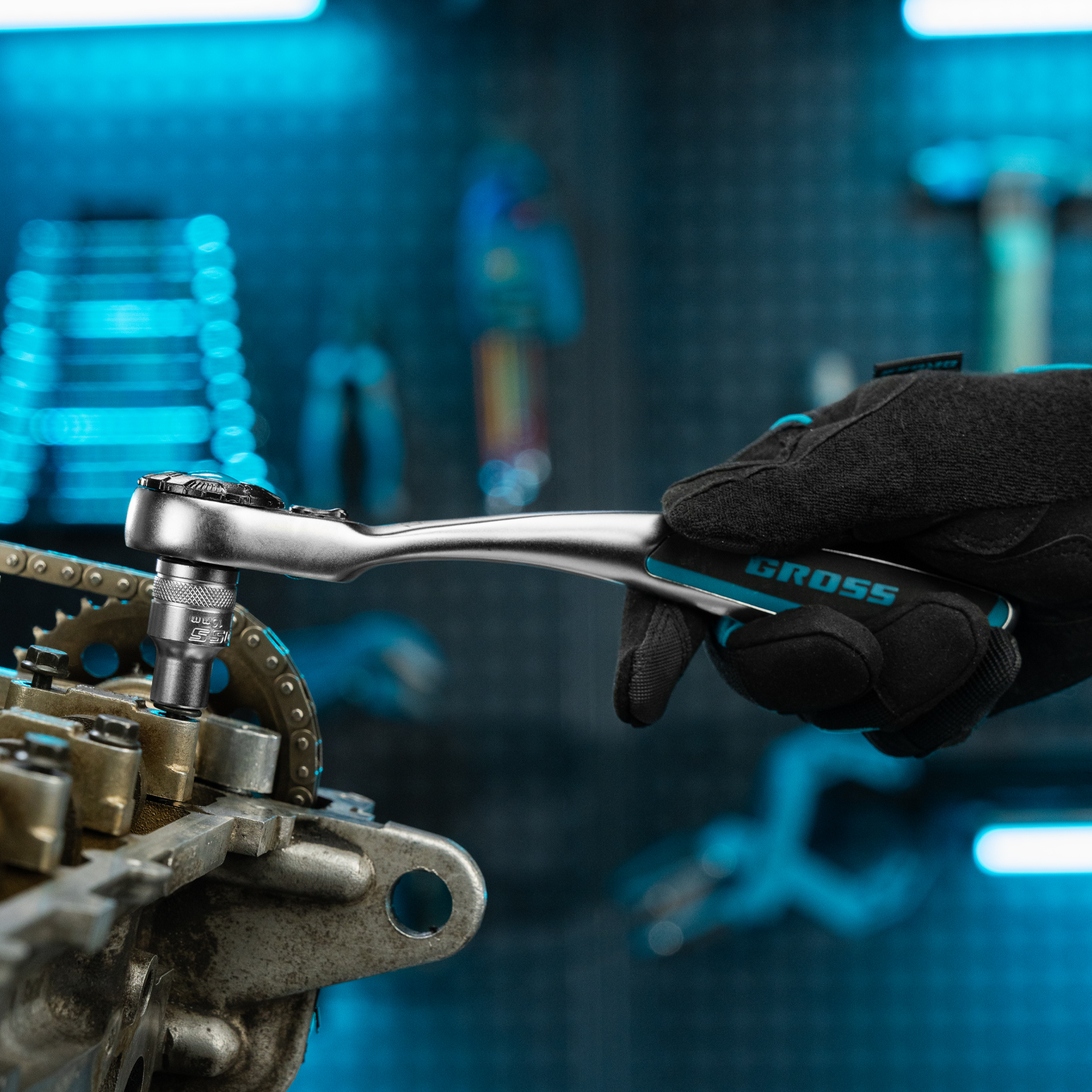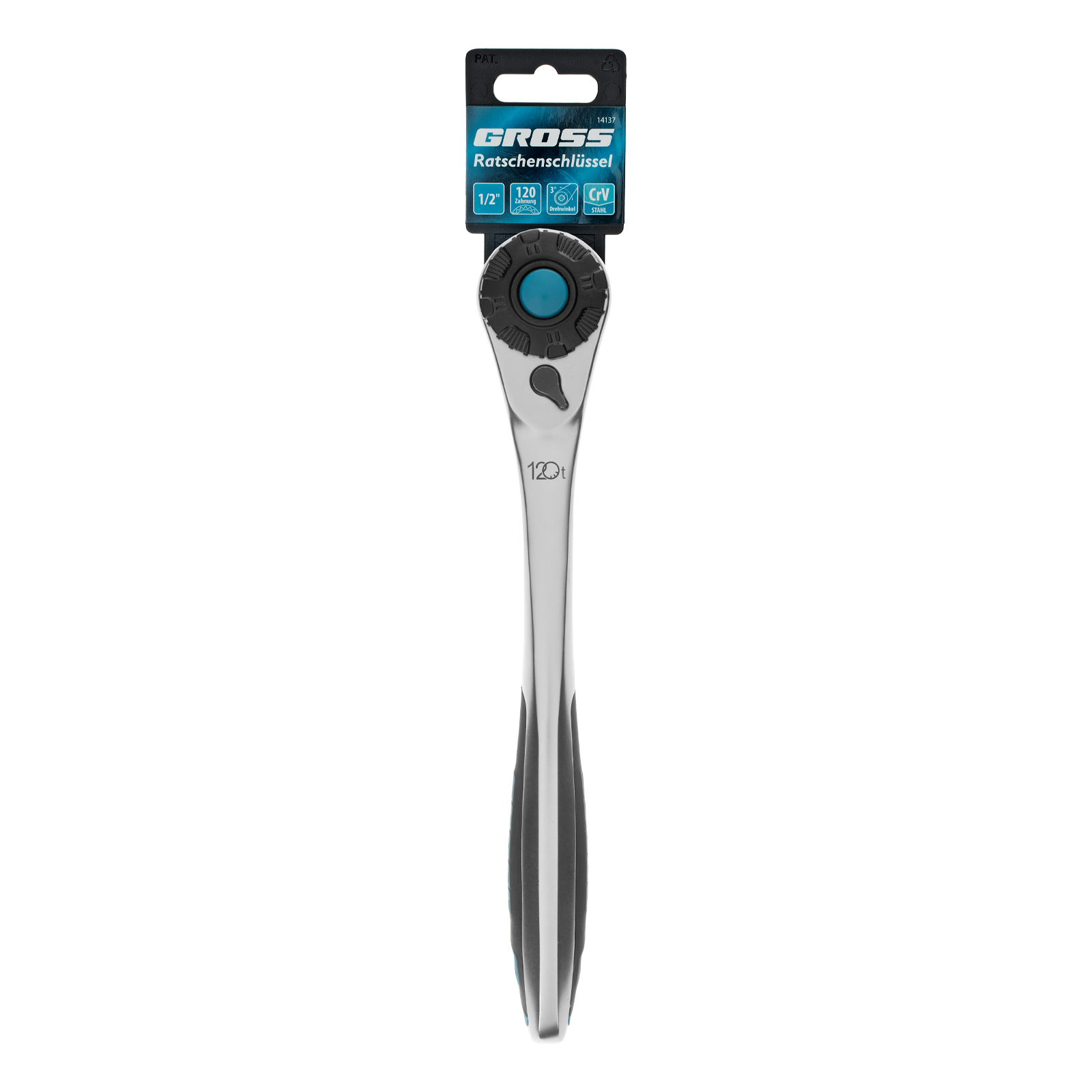 Трещоточный ключ Gross 14137 с присоединительным квадратом 1/2 дюйма предназначен для работ с резьбовыми соединениями. Храповый механизм со 120 зубцами обеспечивает исключительно плавный ход. Инструмент оптимален для работы с труднодоступными крепежами — шаг трещотки составляет всего 3 градуса. Ключ подойдет для ремонта компактной техники, велосипедов, монтажа оборудования, пригодится также дома, в гараже или на даче.