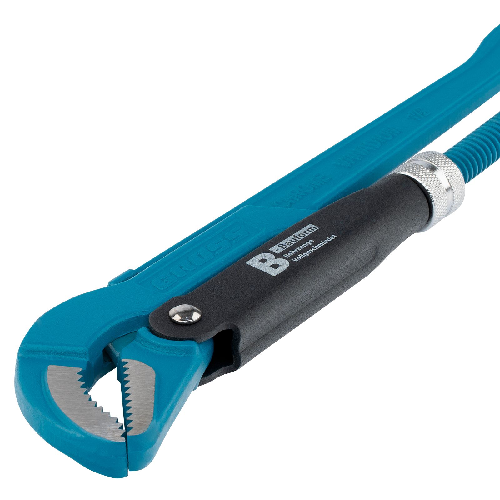 - Высокая прочность — цельнокованый корпус изготовлен из хромованадиевой стали, а губки закалены до твердости 57-60 HRC.