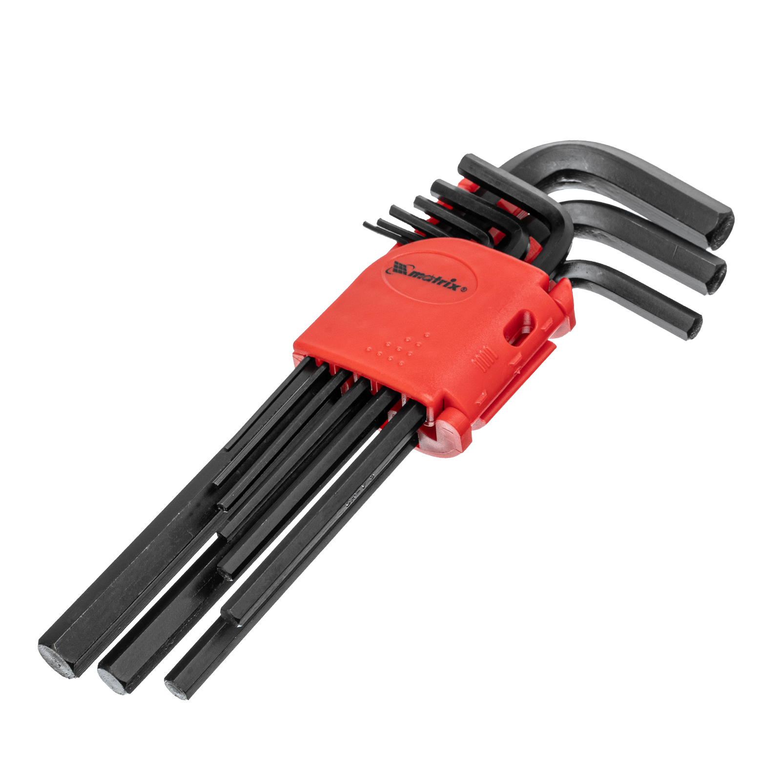 Набор Matrix 11231 из 9 удлиненных оксидированных имбусовых ключей размером 1,5-10 мм, из стали CrV, используется для монтажа и демонтажа крепежа со шлицем HEX. Шестигранники наиболее часто применяются для закручивания мебельных евровинтов и ремонта велосипедов. Удлиненные рабочие части обеспечивают удобный доступ в труднодоступные места.