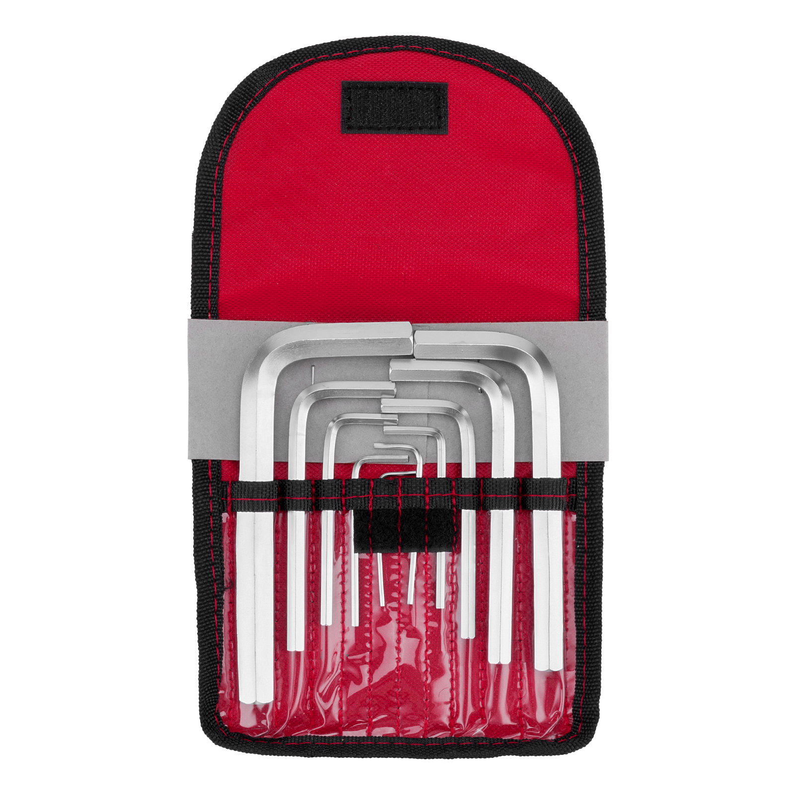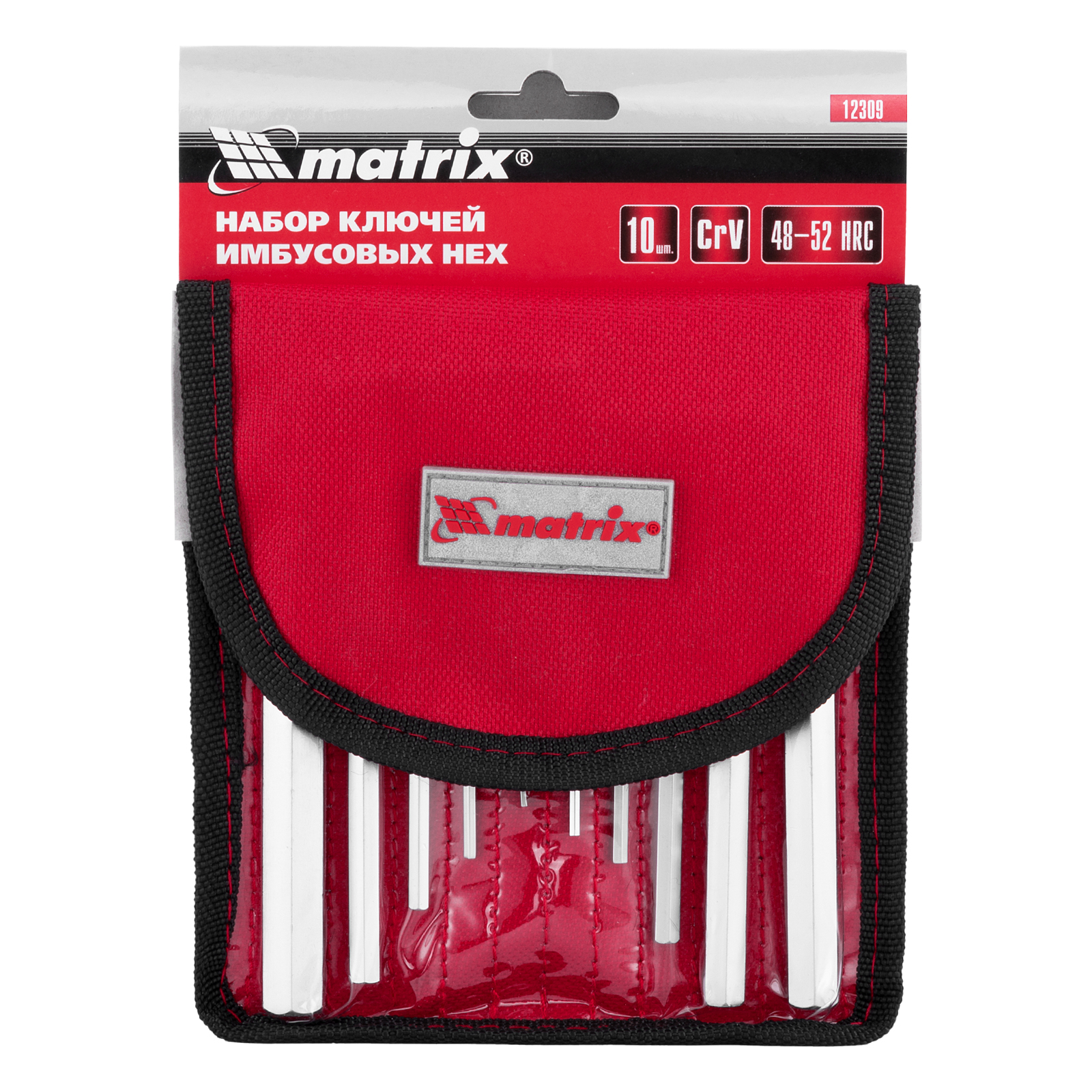 Набор Matrix 12309 в чехле, включающий 9 коротких имбусовых сатинированных ключей HEX из стали CrV, размером 1,5-12 мм, пригодится как начинающему мастеру, так и профессионалу. Ключи применяются при работе с крепежом, имеющим внутренний шестигранник. С их помощью можно собрать мебель или решить мелкие бытовые задачи. Короткие ключи удобны для работы в труднодоступных местах.
