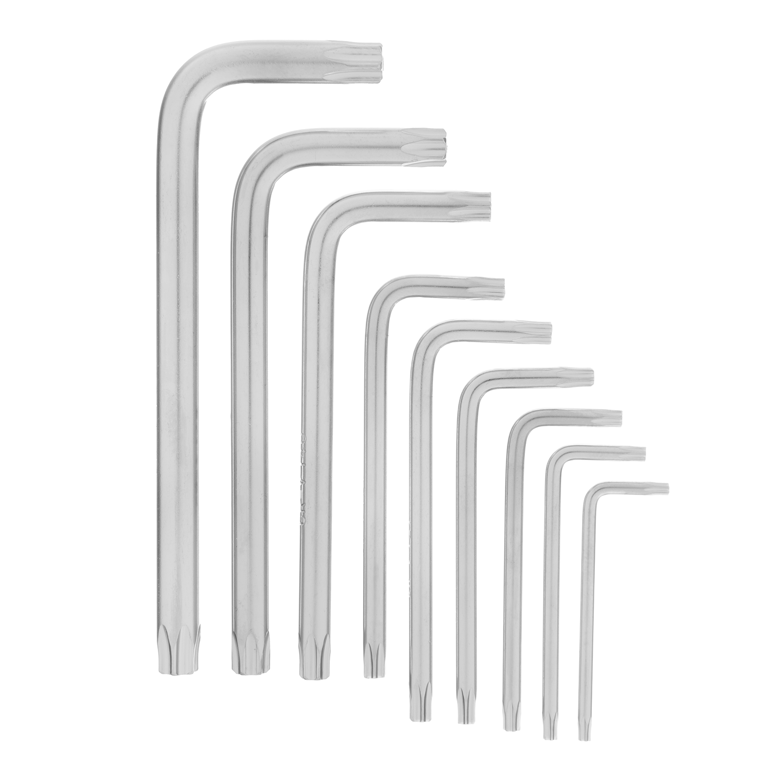 Набор Matrix 12312 в чехле включает 9 коротких сатинированных имбусовых ключей размером Т10-Т50, из стали CrV, и используется для монтажа и демонтажа крепежных элементов с профилем TORX-TORX Tampered. Набор пригодится для домашнего применения и профессиональных работ по ремонту бытовой и электронной техники. Ключи Г-образной формы удобны для работы с большим усилием и в труднодоступных местах.