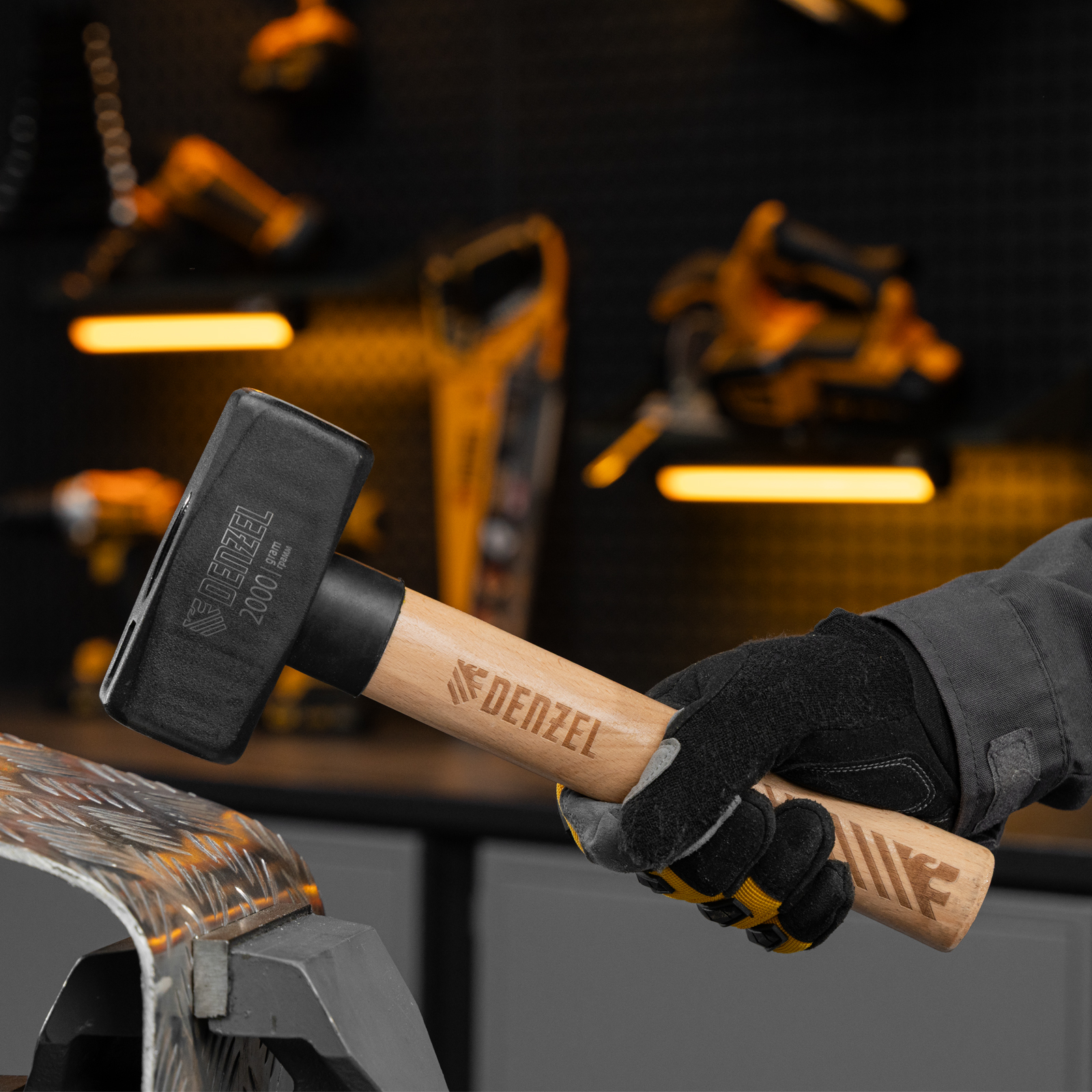 Кувалда Denzel 11021 с буковой рукояткой и кованой головкой весом 2000 г, предназначена для нанесения несильных точных и аккуратных ударов, придания формы металлическим заготовкам, проведения сборочных и демонтажных работ. Инструмент подходит для бытового и профессионального применения.
