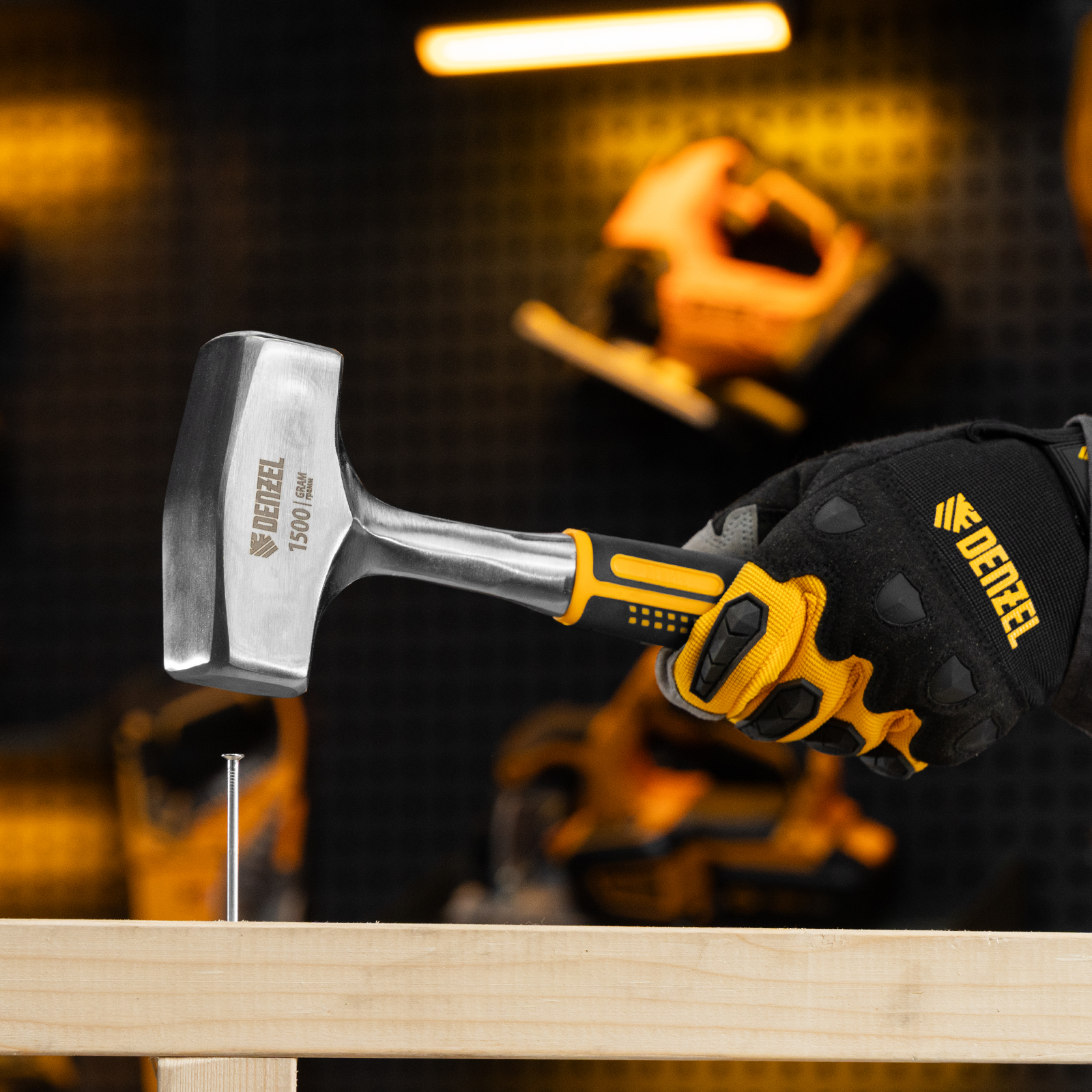 Цельнометаллическая кувалда Denzel 11012 с рабочей частью весом 1,5 кг и двухкомпонентной рукояткой предназначена для нанесения несильных, но точных ударов. Позволяет забивать большие гвозди, колья, может использоваться для сгибания и придания формы металлическим деталям. Используется для проведения слесарных, строительных и кузовных работ, подойдет также и для бытового применения.