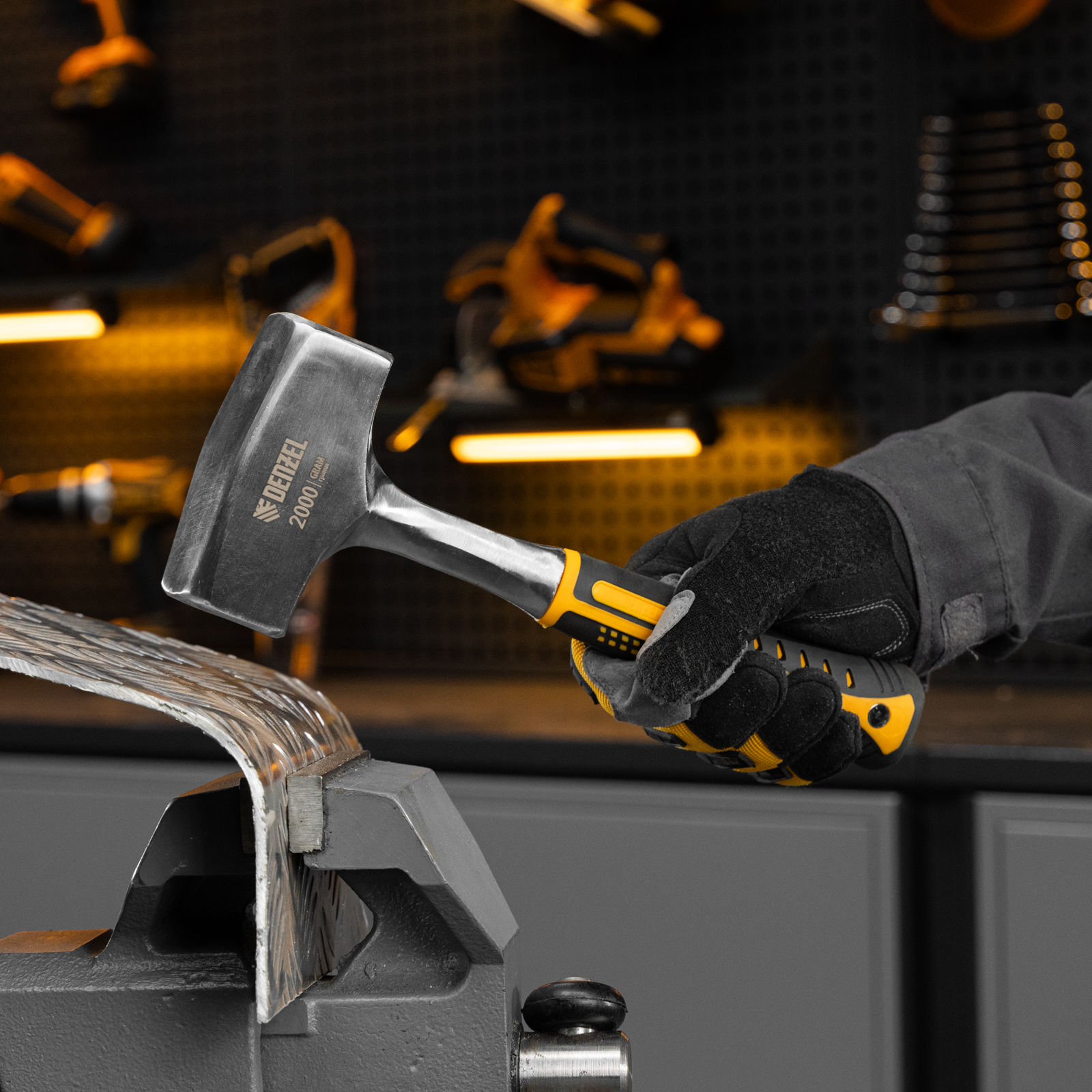 Цельнометаллическая кувалда Denzel 11013 с рабочей частью весом 2 кг и двухкомпонентной рукояткой предназначена для нанесения несильных, но точных ударов. Позволяет забивать большие гвозди, колья, может использоваться для сгибания и придания формы металлическим деталям. Используется для проведения слесарных, строительных и кузовных работ, подойдет также и для бытового применения.
