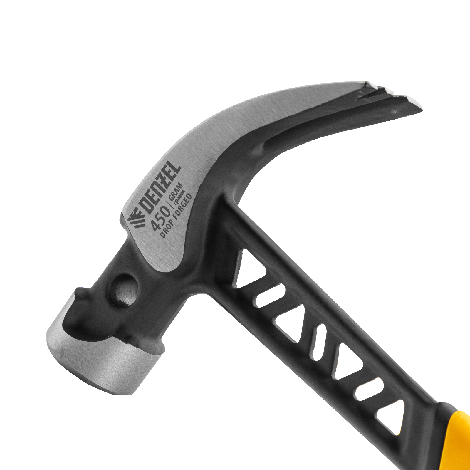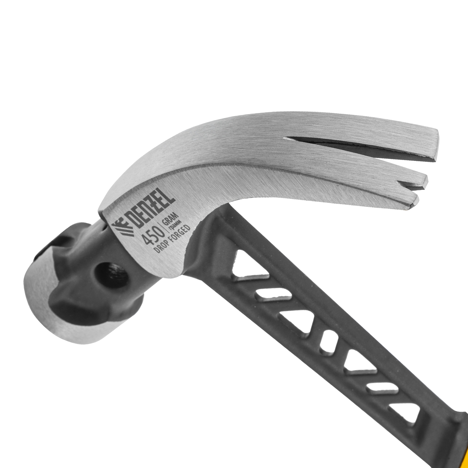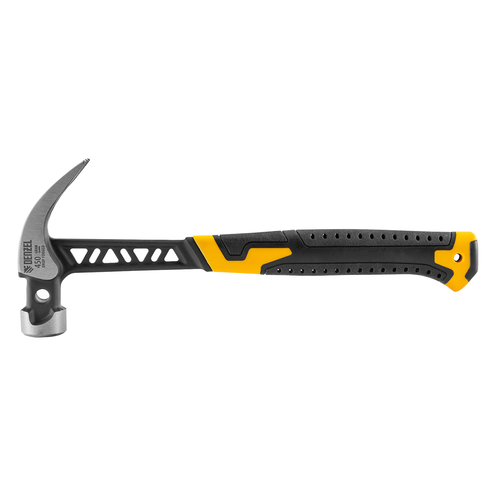Цельнокованый молоток-гвоздодер Denzel 10466 с бойком весом 450 г, с магнитом и двухкомпонентной обрезиненной рукояткой, предназначен для забивания и извлечения гвоздей. Имеет рабочую часть специальной формы — с круглым бойком и плоским носком с клиновидной прорезью. Магнитный держатель в верхней части бойка позволяет установить гвоздь, не придерживая его рукой, что упрощает работу в труднодоступных местах. Молоток используется в профессиональной сфере, пригодится также и в быту.