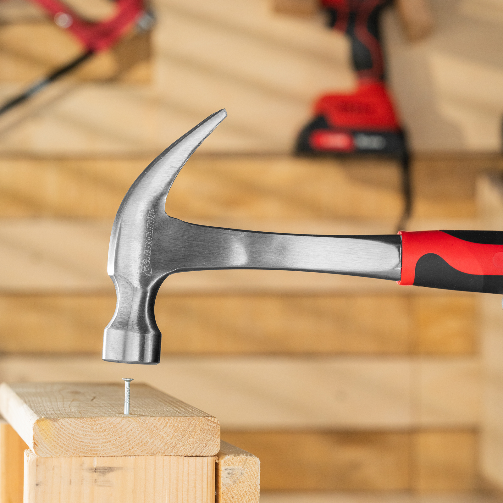 Цельнометаллический молоток-гвоздодер Matrix 10460 с головкой весом 450 г и двухкомпонентной рукояткой — ударный инструмент с функцией извлечения гвоздей. С одной стороны имеется круглый боек для нанесения ударов, а с другой — плоский изогнутый носок с клиновидной прорезью, позволяющей подцепить шляпку гвоздя. Инструмент используется в профессиональной сфере, а также подходит для решения бытовых задач.