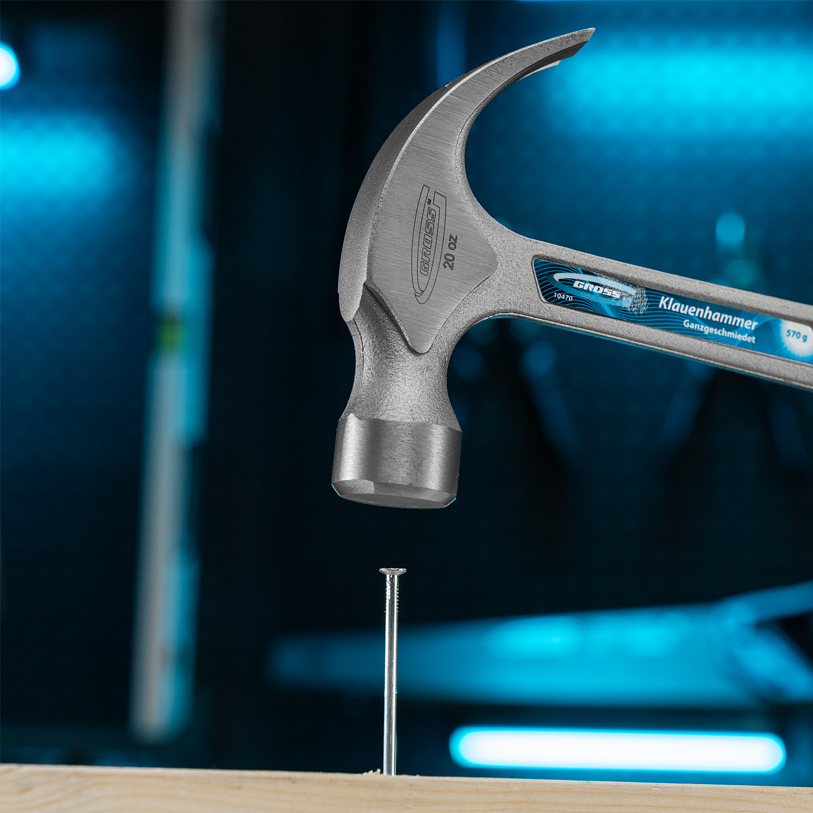 Цельнокованый молоток-гвоздодер Gross 10470 с рабочей головкой весом 570 г и трехкомпонентной рукояткой предназначен для забивания гвоздей и извлечения застрявшего крепежа. Гвозди удобно подцеплять и выпрямлять при помощи изогнутого плоского носка с клиновидной прорезью. Молоток рекомендован как для домашнего, так и профессионального применения.