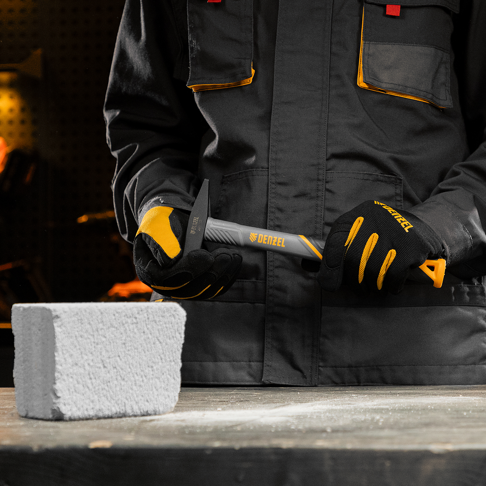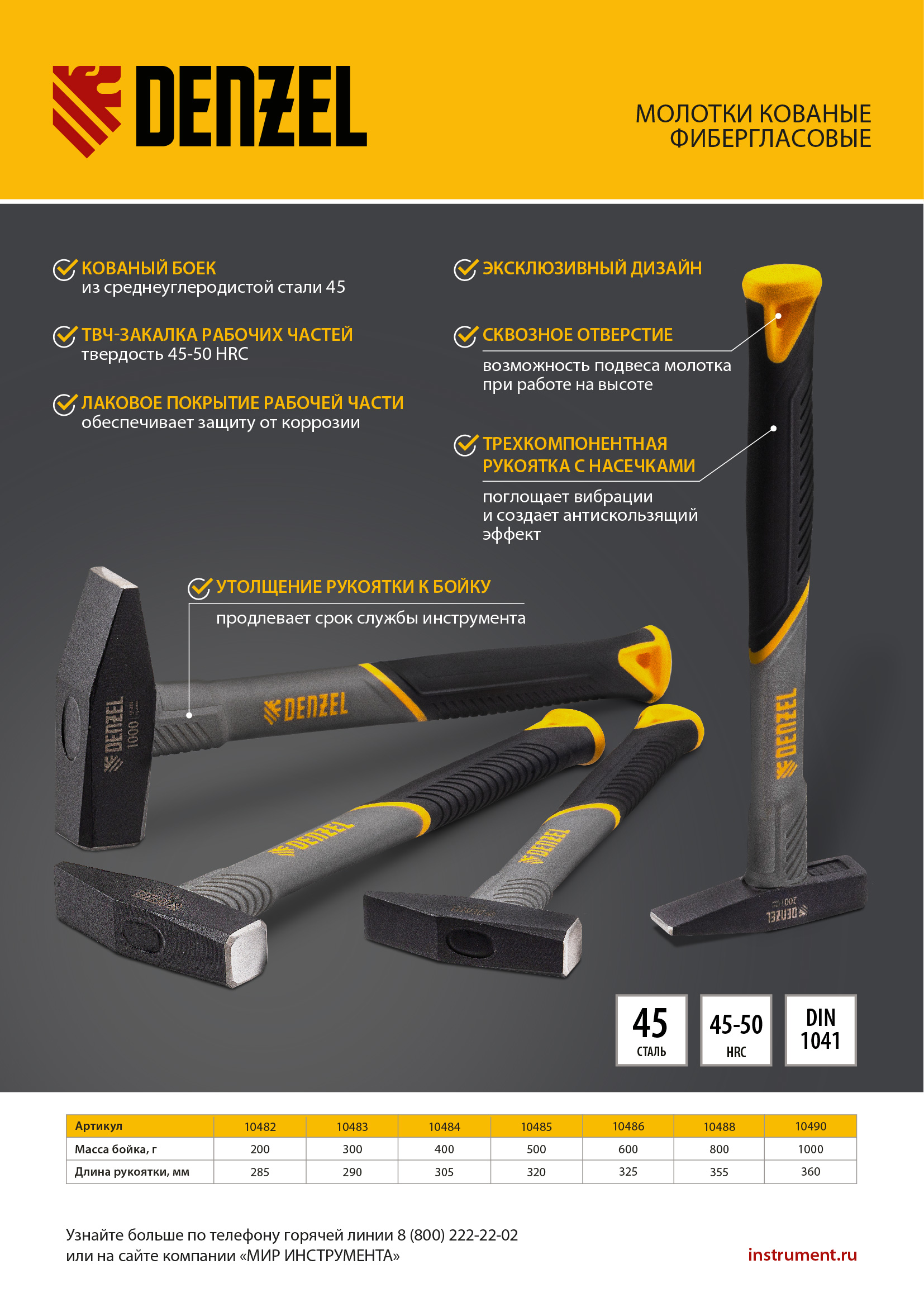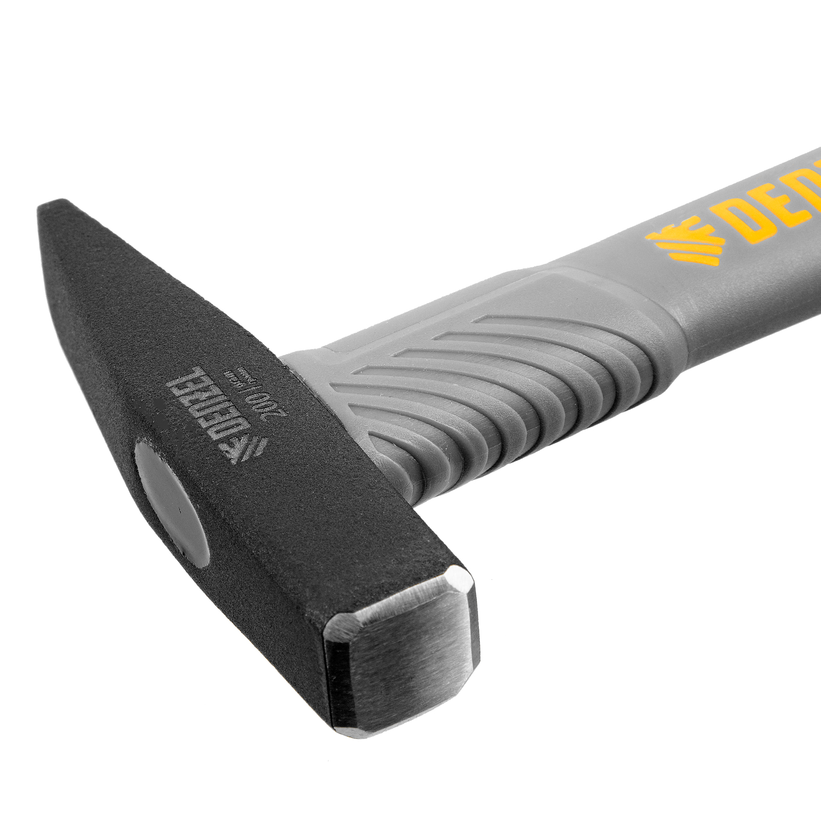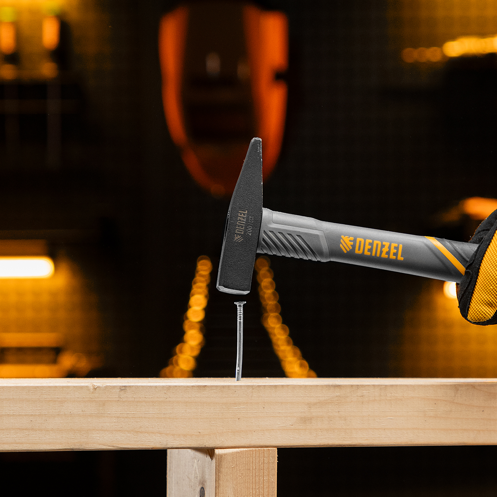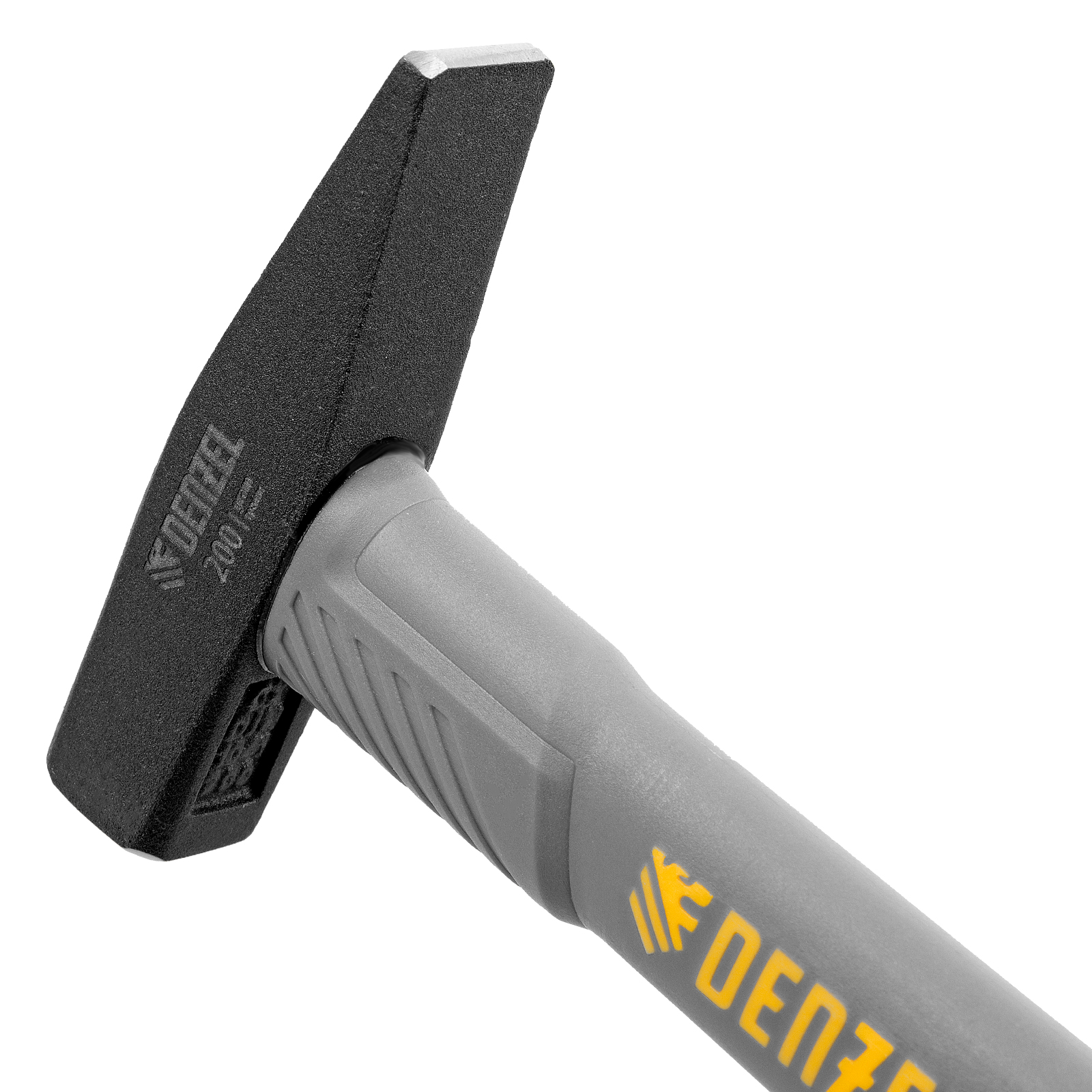 Молоток слесарный кованый Denzel 10482 с квадратным бойком весом 200 г и трехкомпонентной фибергласовой рукояткой с TPR-покрытием предназначен для работы с металлическими заготовками, забивания гвоздей, штырей, дюбелей и другого крепежа. Рукоятка выполнена в эксклюзивном дизайне. Молоток рекомендован для профессионального и домашнего применения.