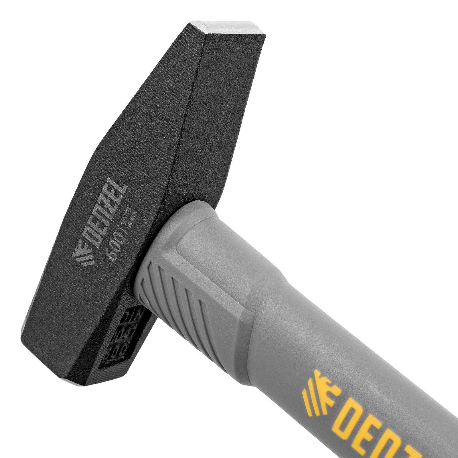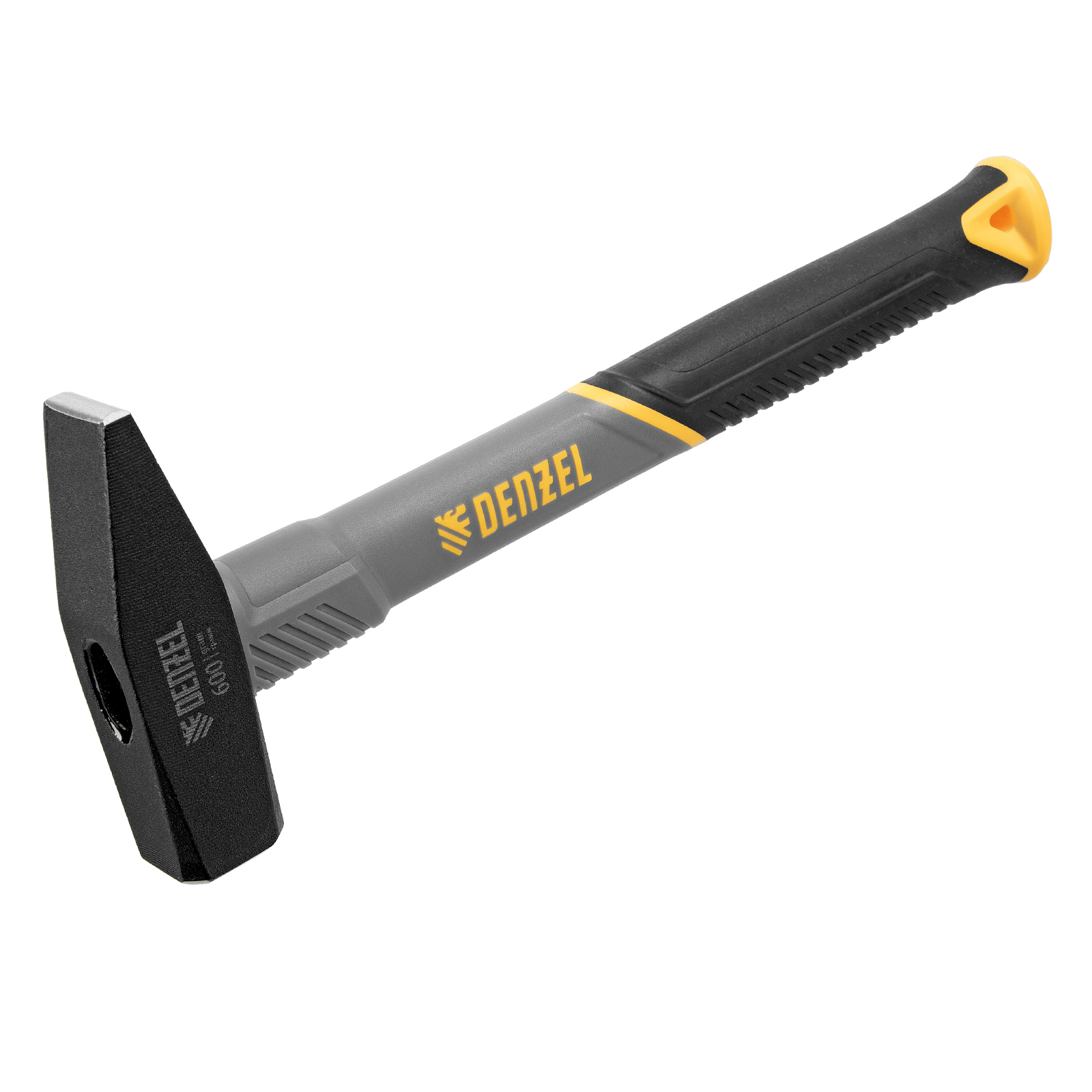 Молоток слесарный кованый Denzel 10486 с квадратным бойком весом 600 г и трехкомпонентной фибергласовой рукояткой с TPR-покрытием предназначен для работы с металлическими заготовками, забивания гвоздей, штырей, дюбелей и другого крепежа. Рукоятка выполнена в эксклюзивном дизайне. Молоток рекомендован для профессионального и домашнего применения.