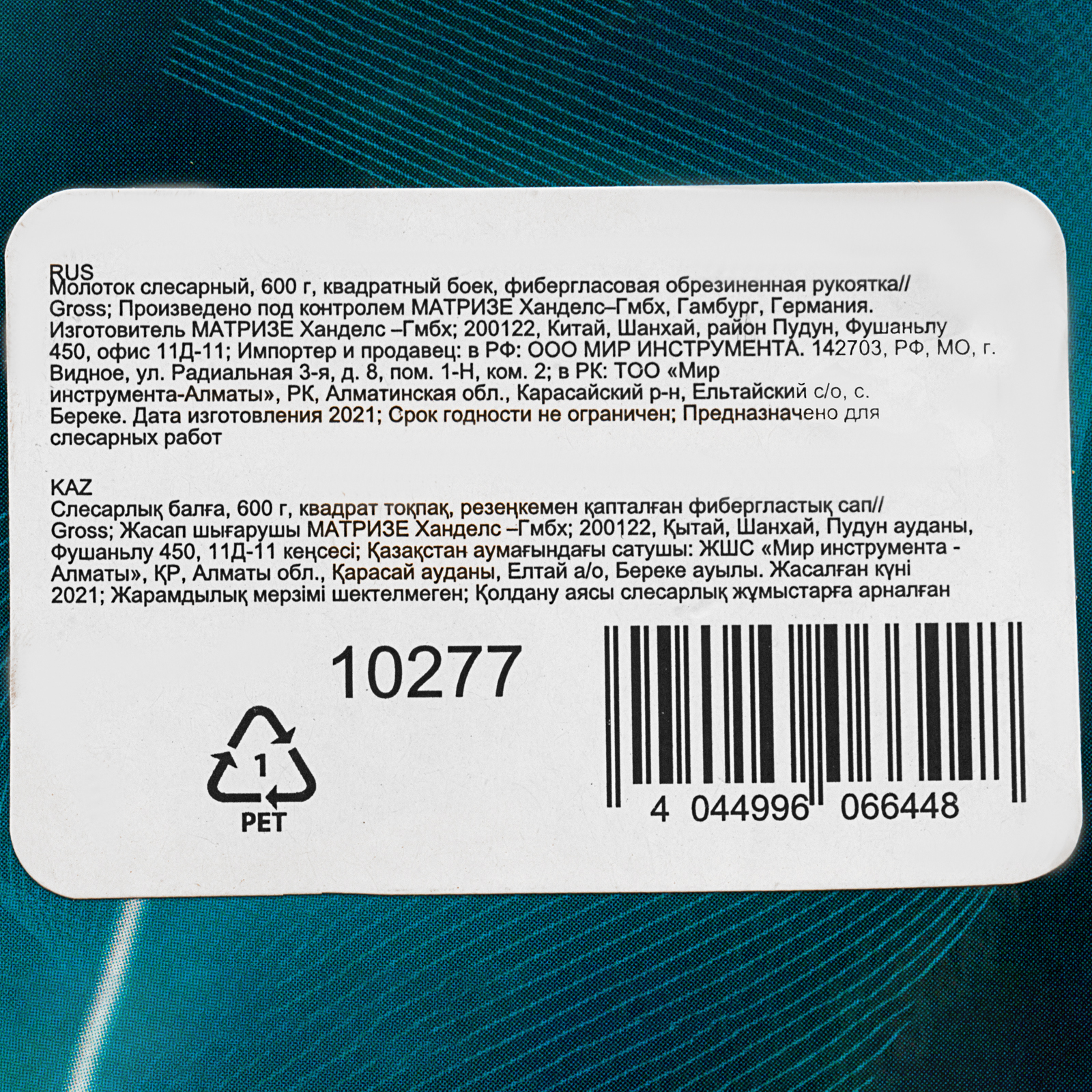 Слесарный молоток Gross 10277 с квадратным бойком весом 600 г и фибергласовой обрезиненной рукояткой предназначен для работы с металлическими заготовками, забивания гвоздей, штырей, дюбелей и других крепежей. Подходит для манипуляций в узких местах благодаря заостренной форме бойка. Молоток рекомендован для профессионального и домашнего применения.