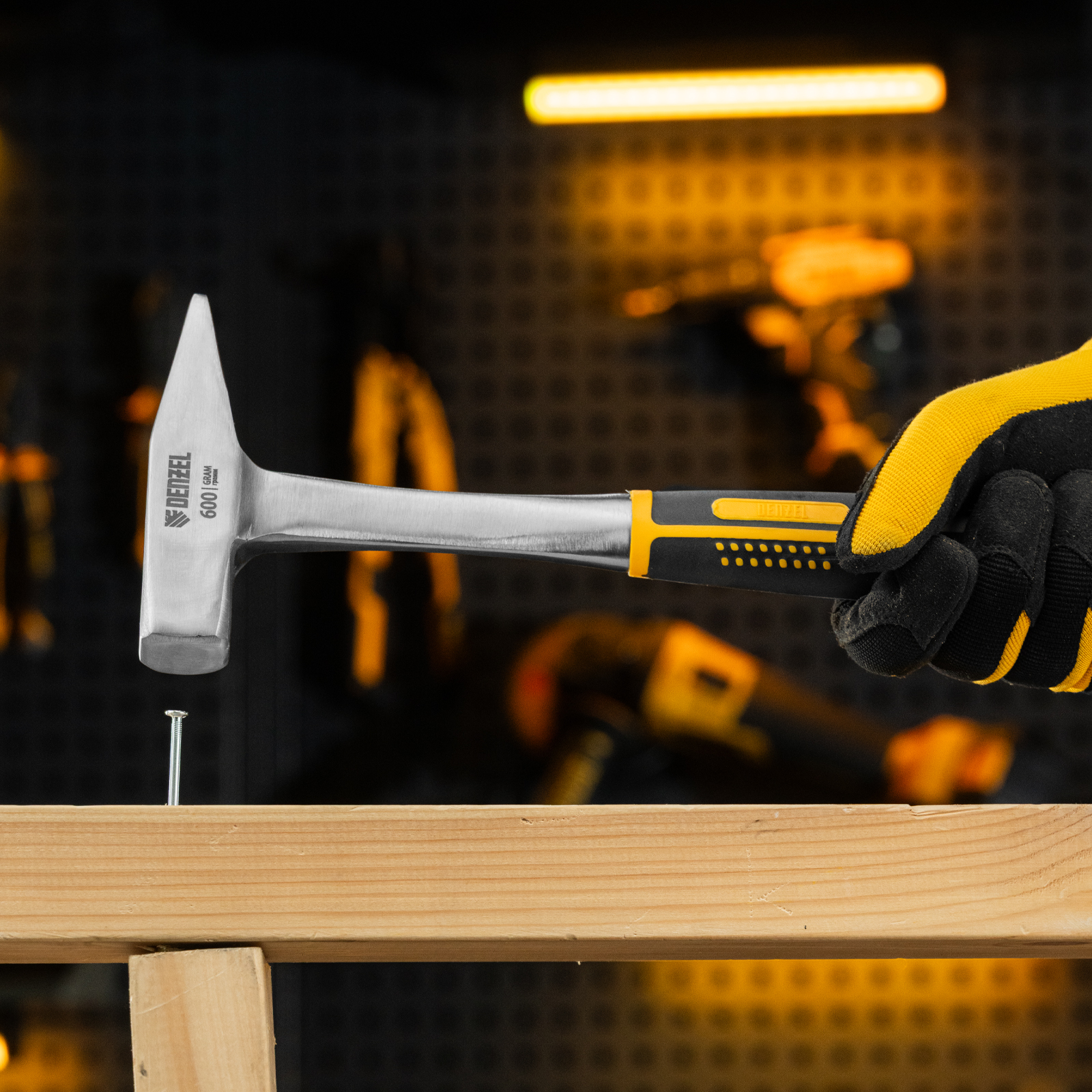Цельнометаллический слесарный молоток Denzel 10404 с головкой весом 600 г и двухкомпонентной рукояткой предназначен для работы с металлическими заготовками, забивания гвоздей, штырей, дюбелей и других крепежных элементов. Необходим во время строительства, ремонта, сборки и установки мебели, также пригодится дома, на даче и в гараже. Инструмент рекомендован для профессионального и домашнего применения.