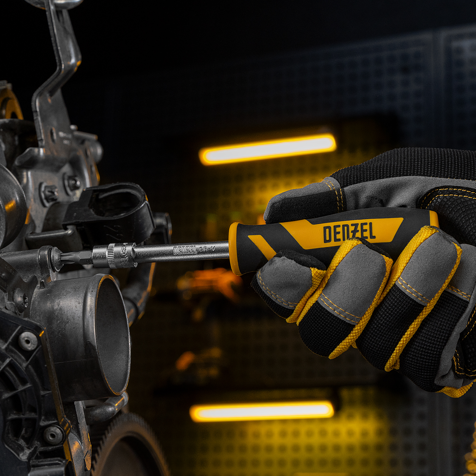 - Уверенный захват — благодаря антискользящим насечкам даже влажные или замасленные инструменты не выскальзывают из рук.
