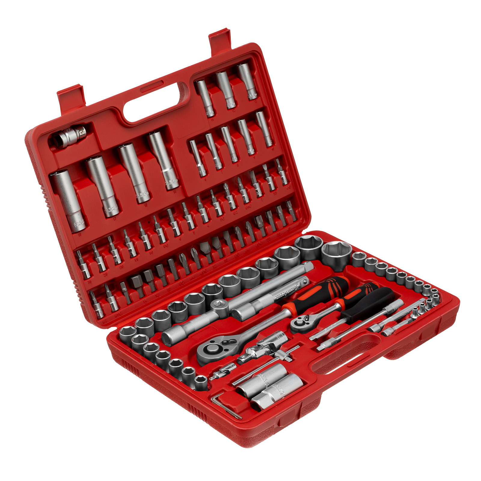 Слесарно-монтажный набор Matrix 13580 с присоединительными квадратами 1/4" и 1/2" включает в себя 94 предмета, среди которых ключи-трещотки, биты и торцевые головки, в том числе удлиненные, воротки, отвертка под биты, карданные шарниры, переходник, удлинители. Набор позволяет решать широкий спектр задач и используется в профессиональной сфере, а также будет полезен в быту.
